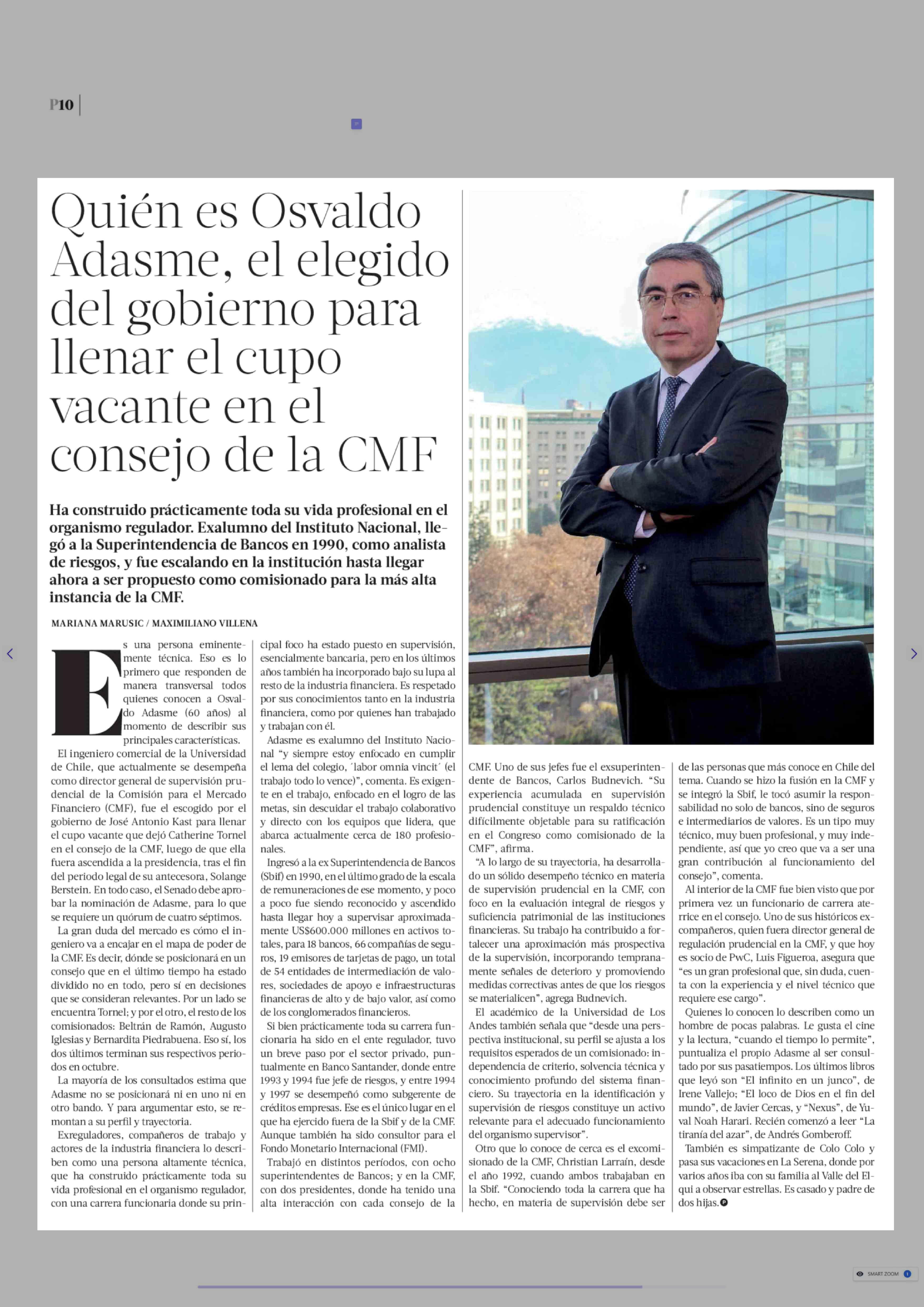Título: Quién es Osvaldo Adasme, el elegido del gobierno para llenar el cupo vacante en el consejo de la CMF