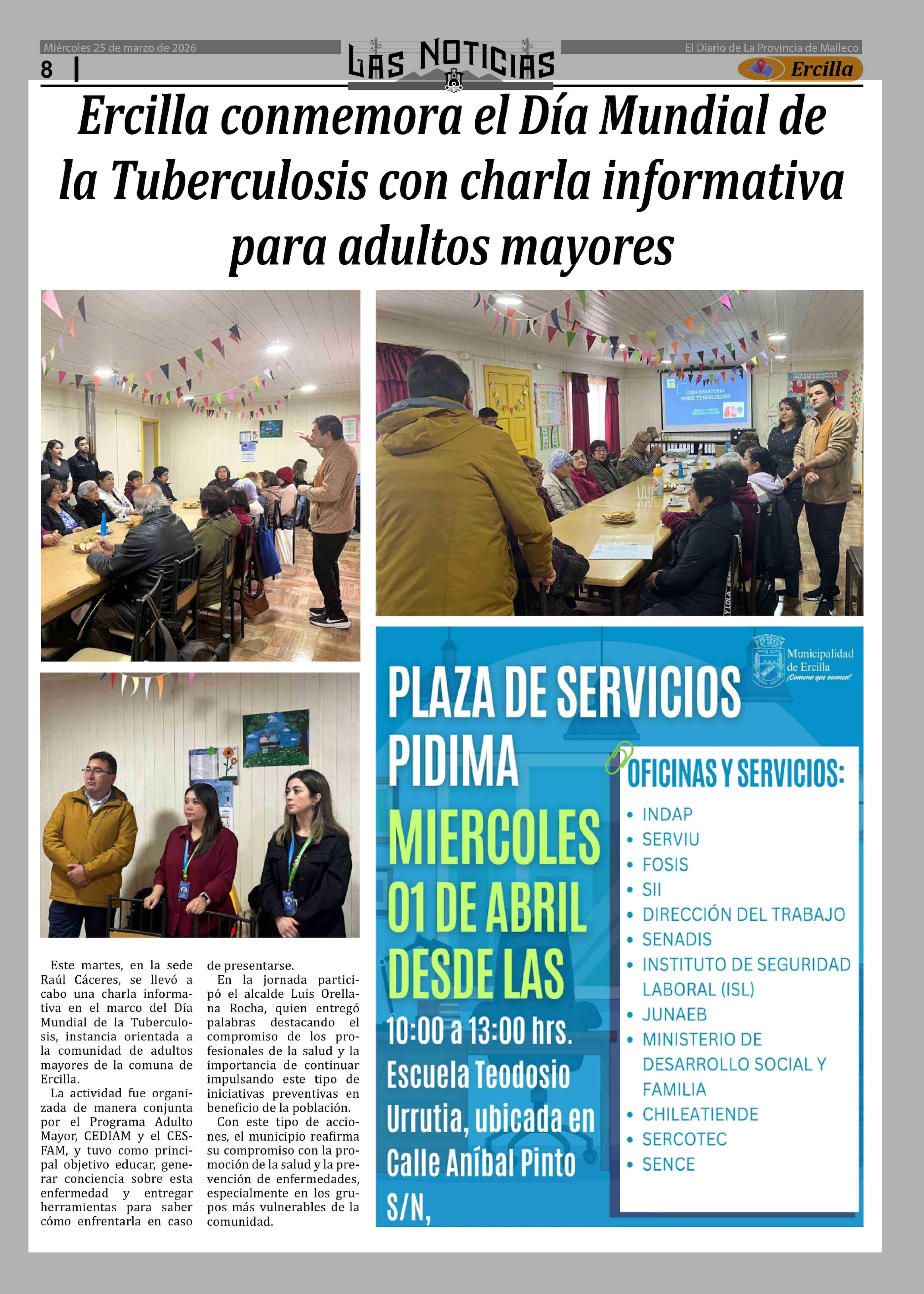 Ercilla conmemora el Día Mundial de la Tuberculosis con charla informativa para adultos mayores 25-03-2026 Las Noticias |