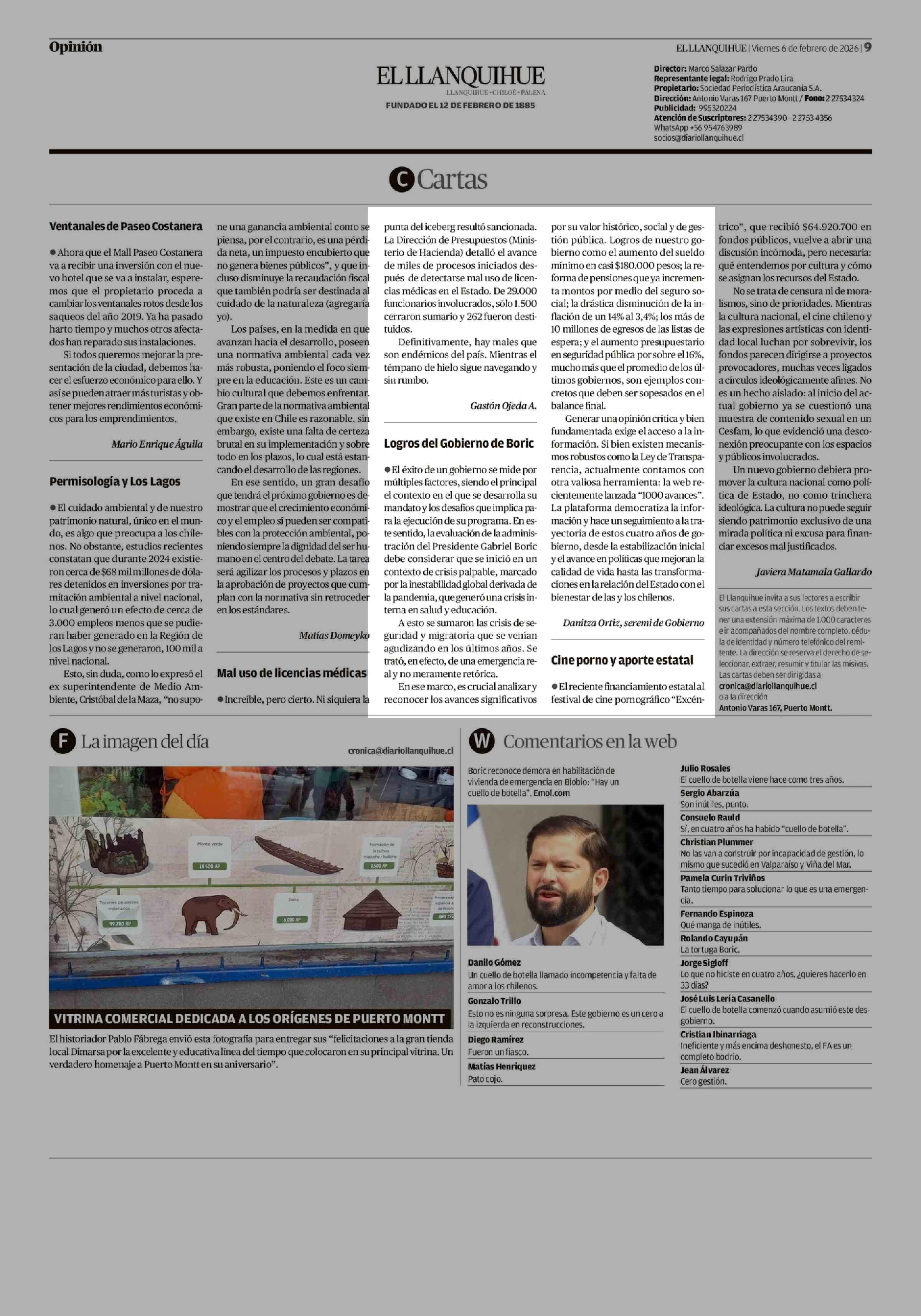 Cartas: Logros del Gobierno de Boric 06-02-2026 El Llanquihue |