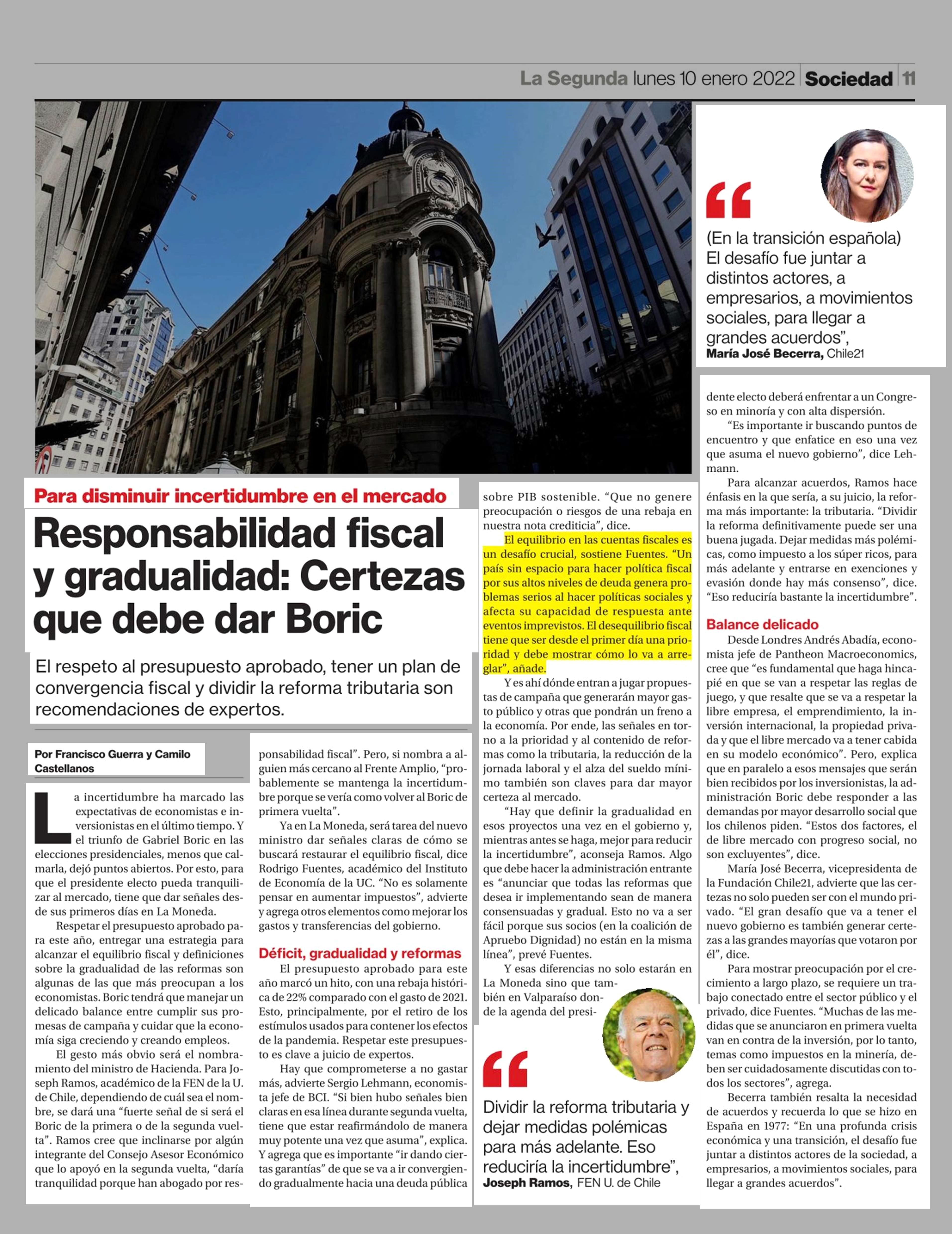 Responsabilidad fiscal y gradualidad: Certezas que debe dar Boric 10-01-2022 La Segunda |