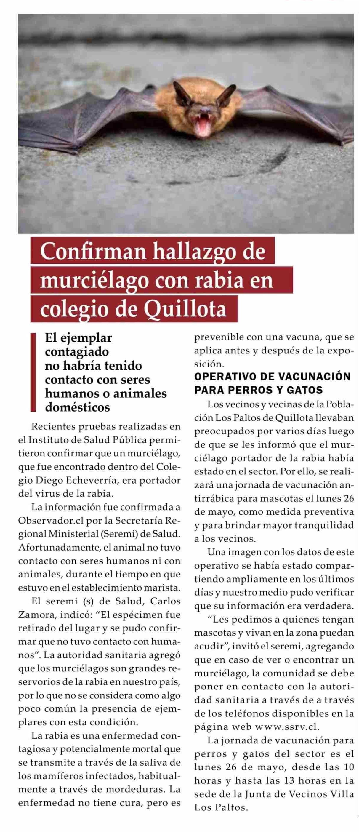 Confirman hallazgo de con rabia en coleo de Quillota 22-05-2025 El Observador Vespertino |