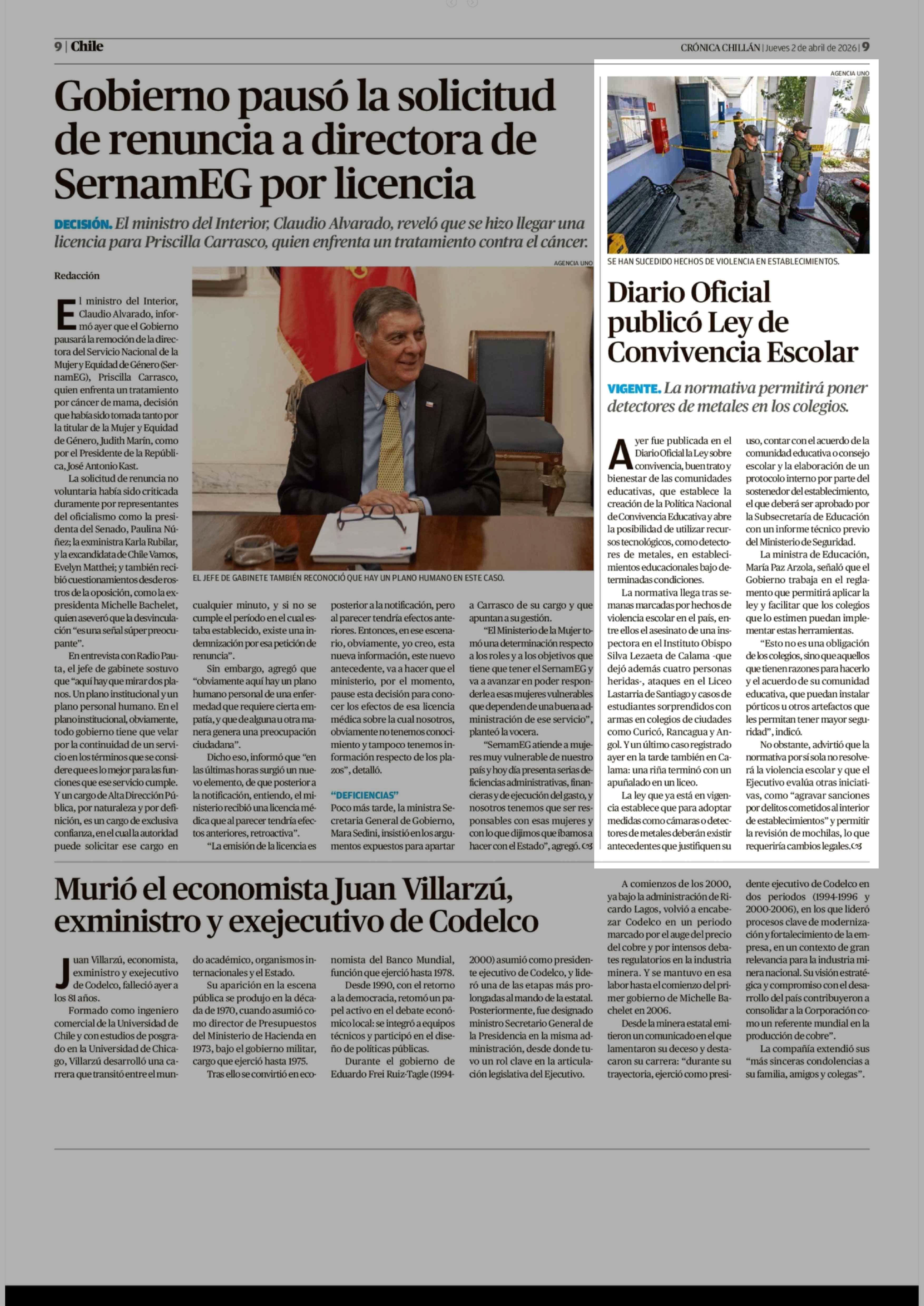 Diario Oficial publicó Ley de Convivencia Escolar 02-04-2026 Crónica de Chillán |