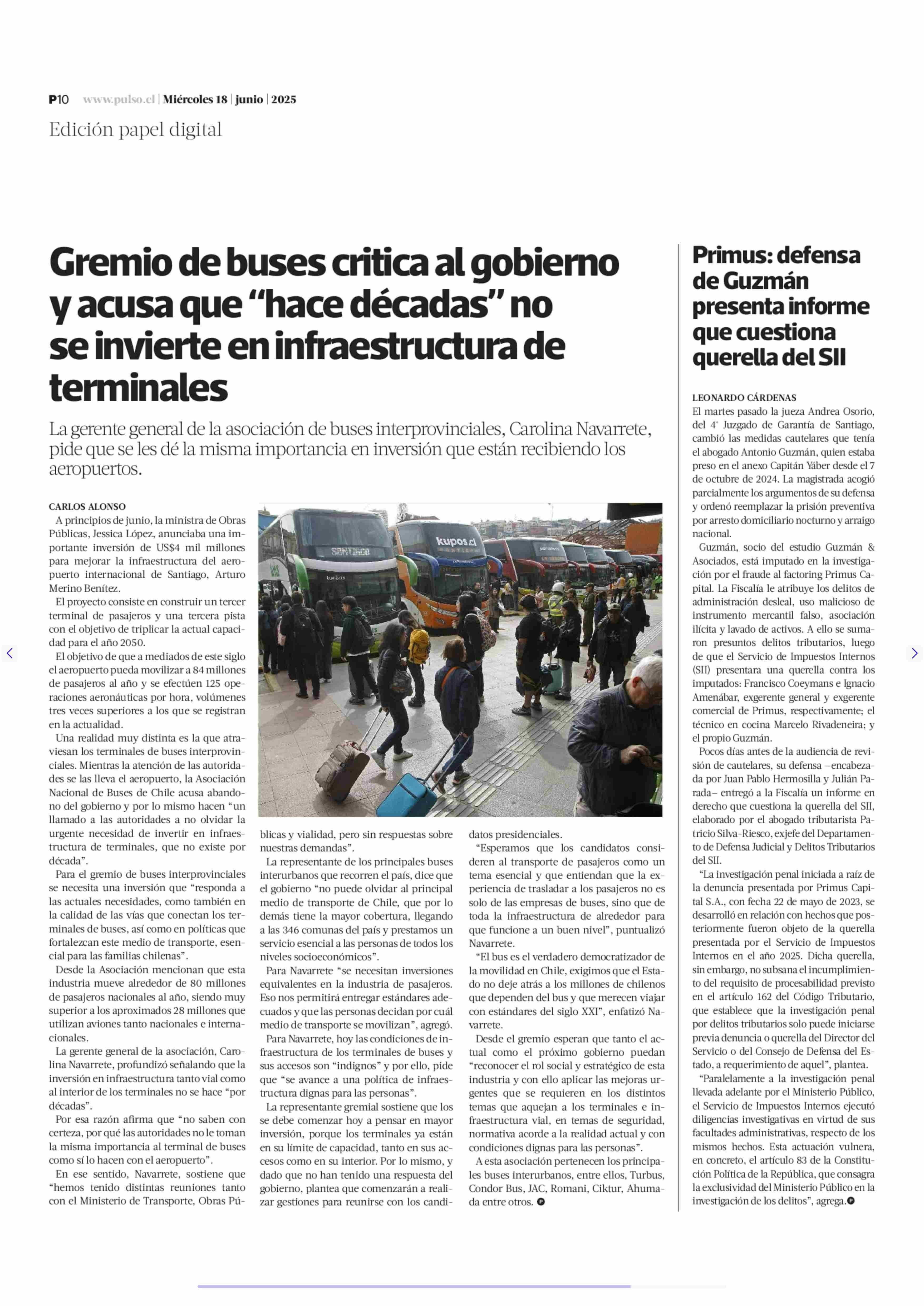Gremio de buses crítica al gobierno y acusa que “hace décadas” no se invierte en infraestructura de terminales 18-06-2025 La Tercera |