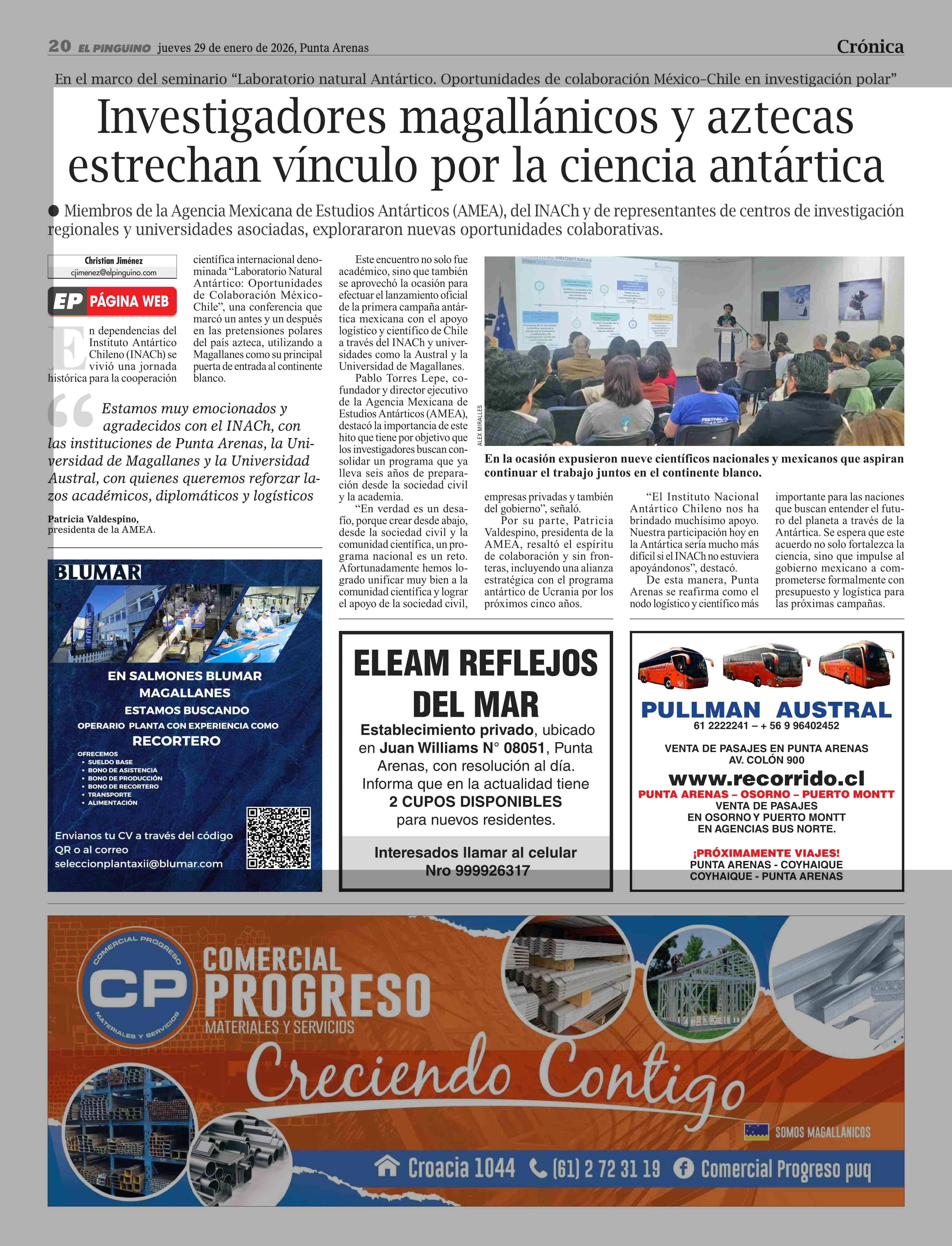Investigadores magallánicos y aztecas estrechan vínculo por la ciencia antártica 29-01-2026 El Pingüino |
