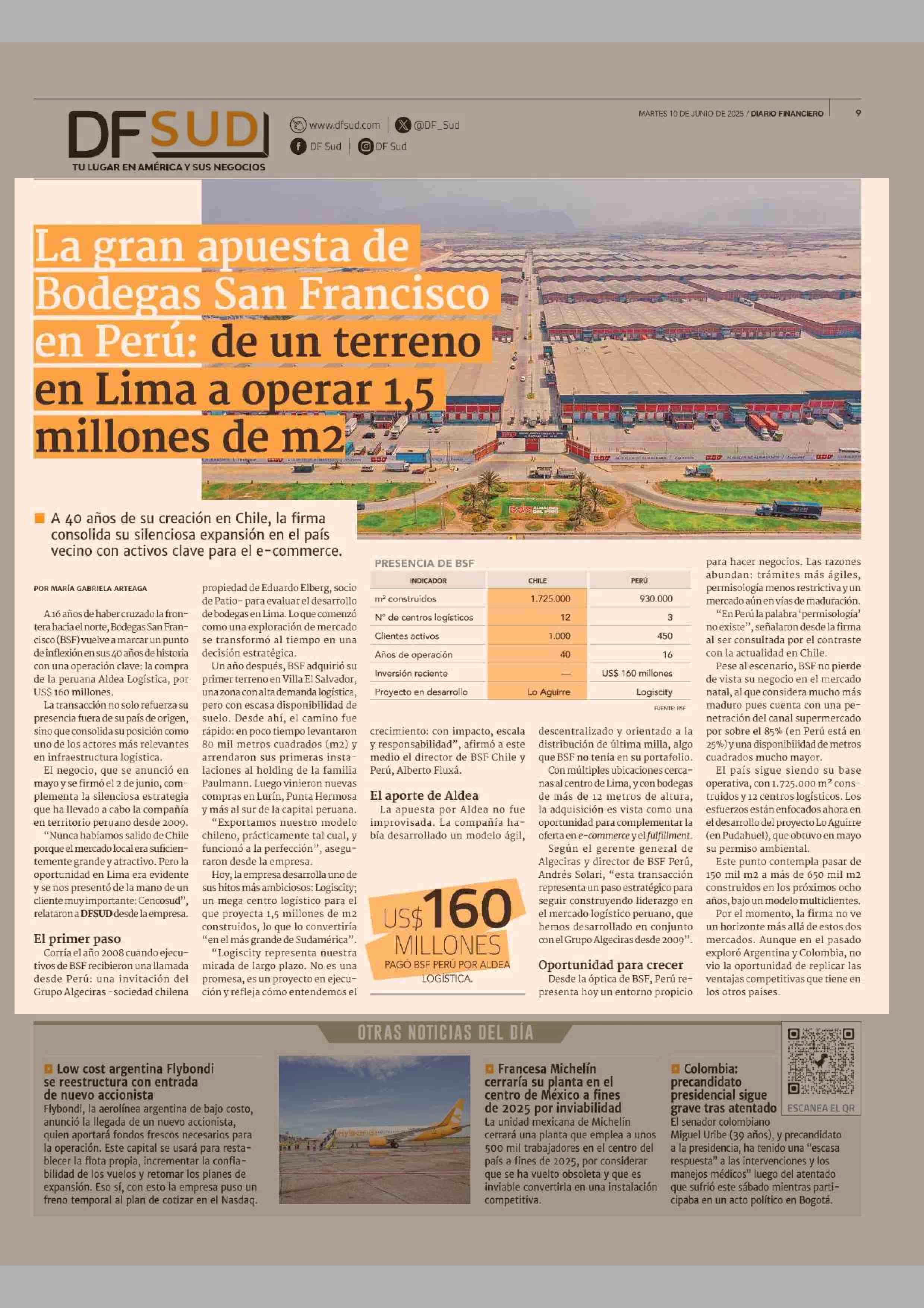 La gran apuesta de Bodegas San Francisco en Perú: de un terreno en Lima a operar 1,5 millones de m2 10-06-2025 Diario Financiero |