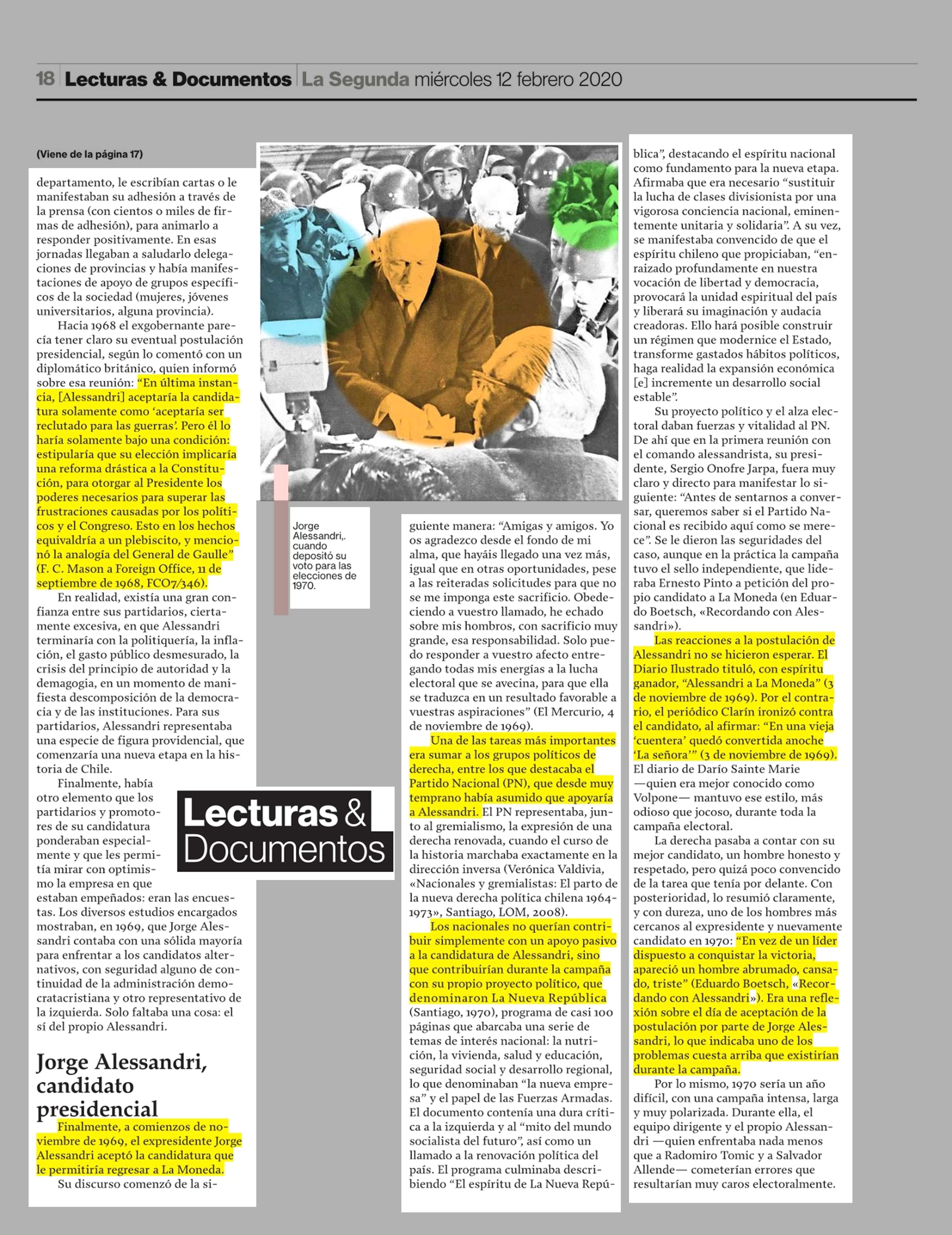 Alessandri, el esperado regreso 12-02-2020 La Segunda |