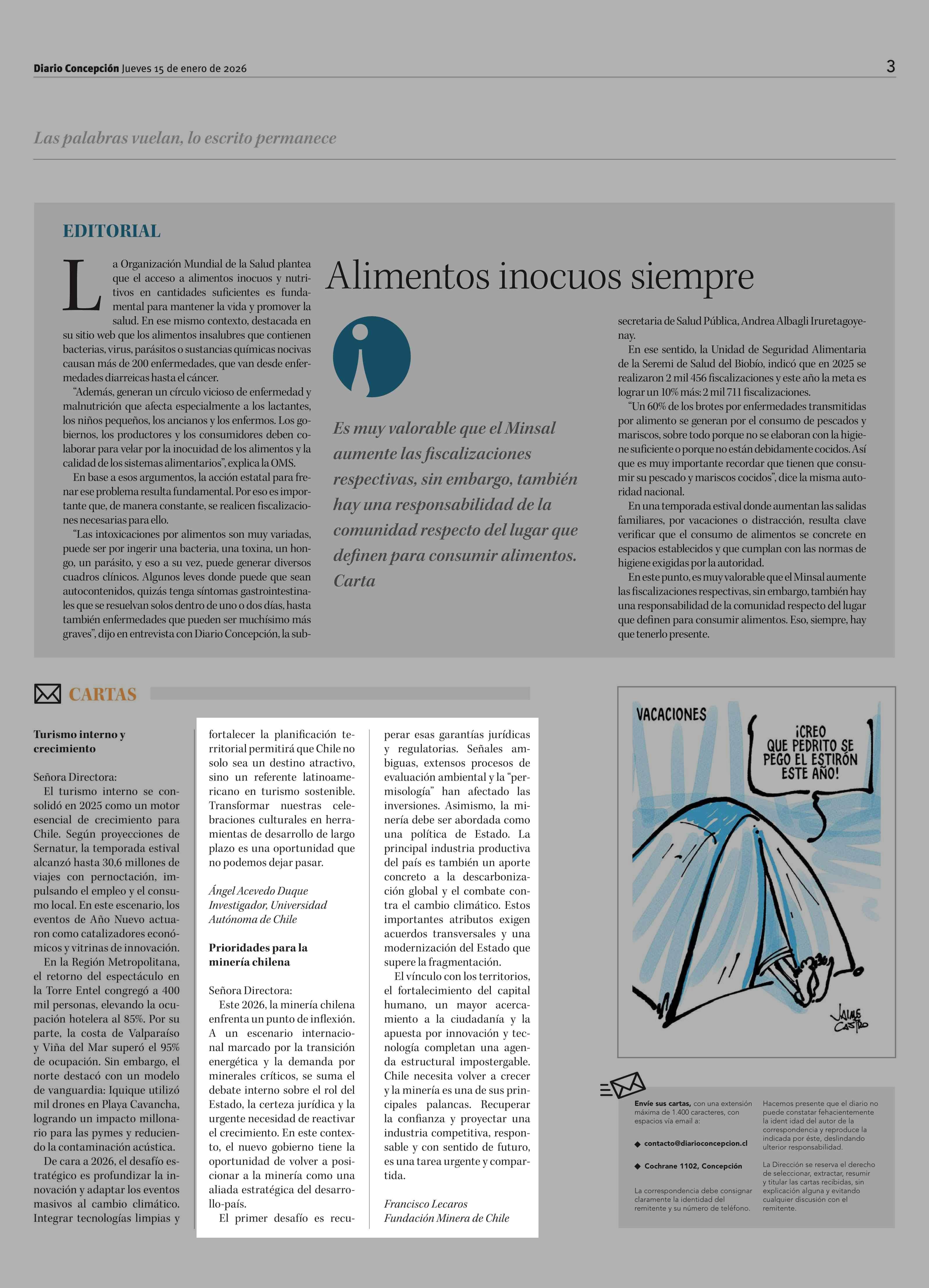 Cartas: Prioridades para la minería chilena 15-01-2026 Diario Concepción |