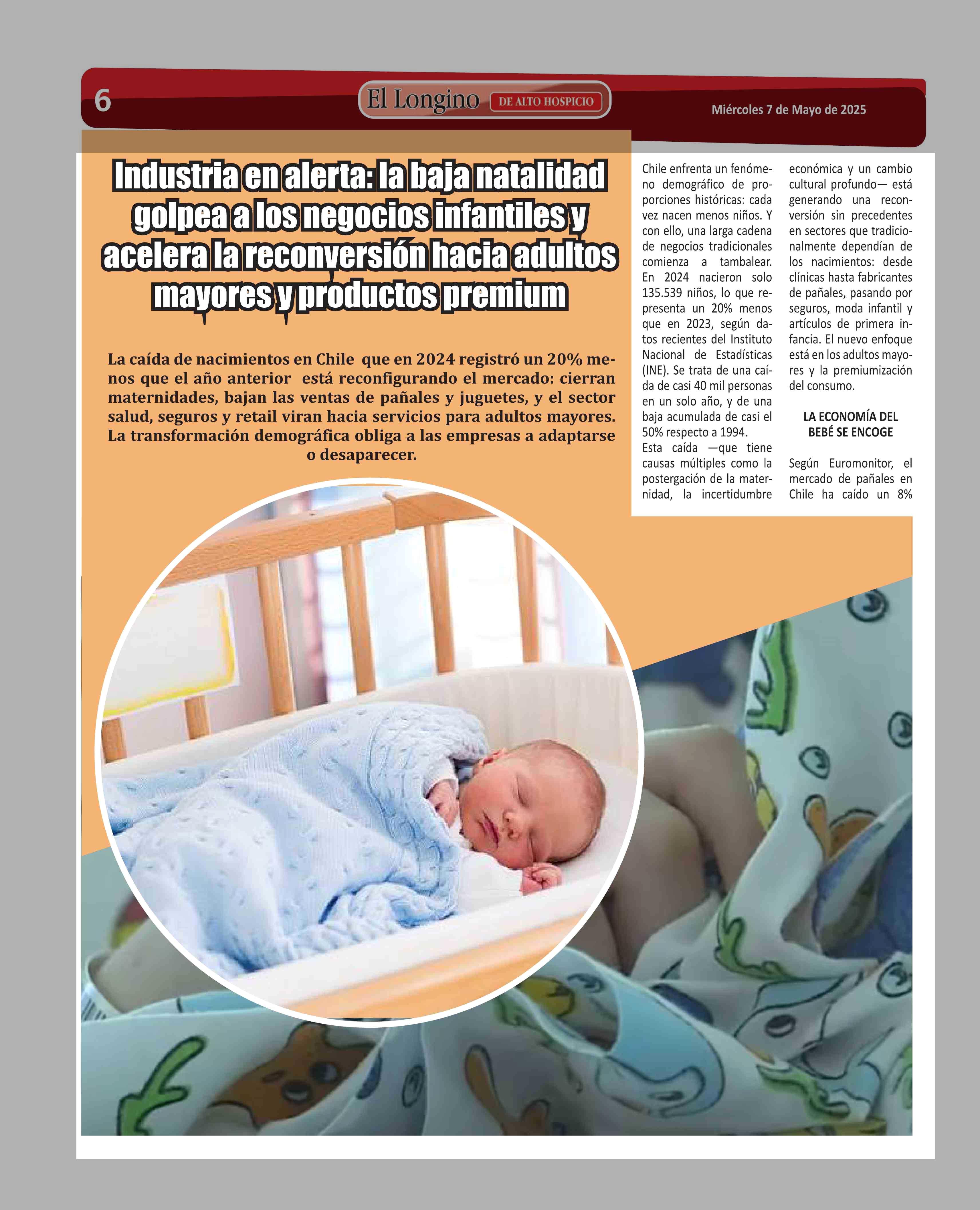| Título: | Industria en alerta: la baja natalidad Industria en alerta: la baja natalidad golpea a los negocios infantiles y golpea a los negocios infantiles y acelera la reconversión hacia adultos acelera la reconversión hacia adultos mayores y productos premium mayores y productos premium |