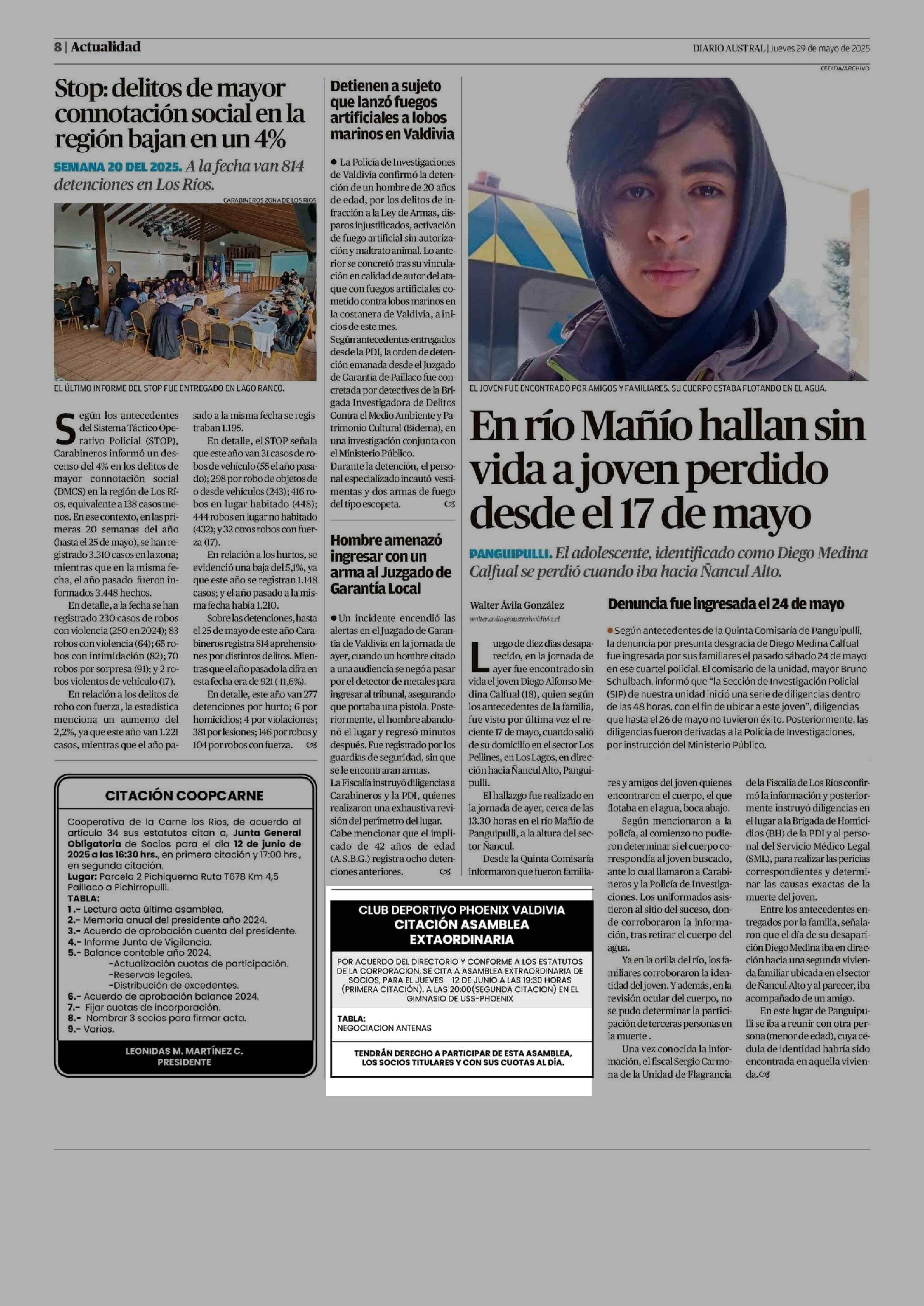 | Fecha: | 29-05-2025 | Sector: | Noticia general | Región: | Región de Los Ríos |