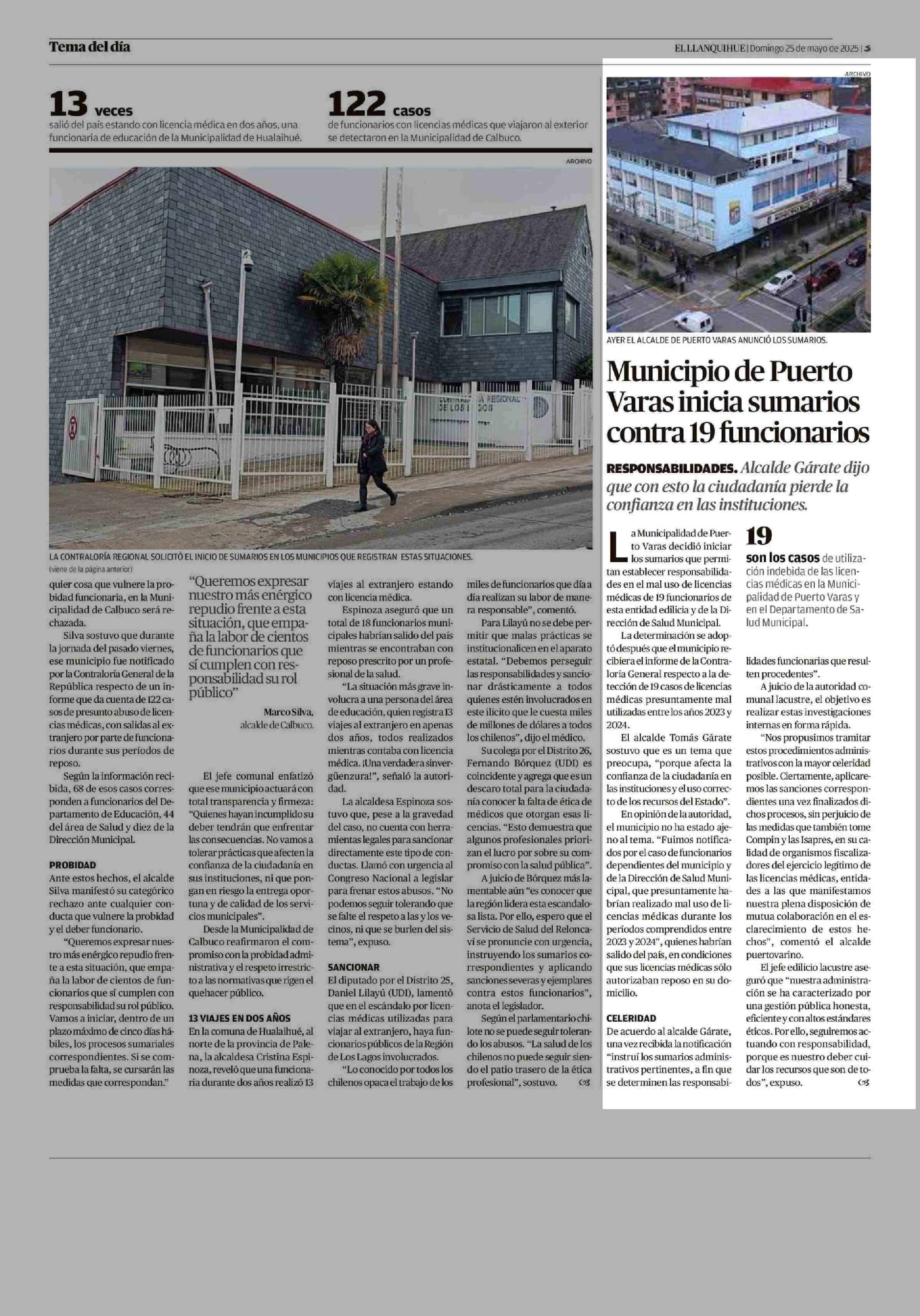 Municipio de Puerto Varas inicia sumarios contra 19 funcionarios 25-05-2025 El Llanquihue |