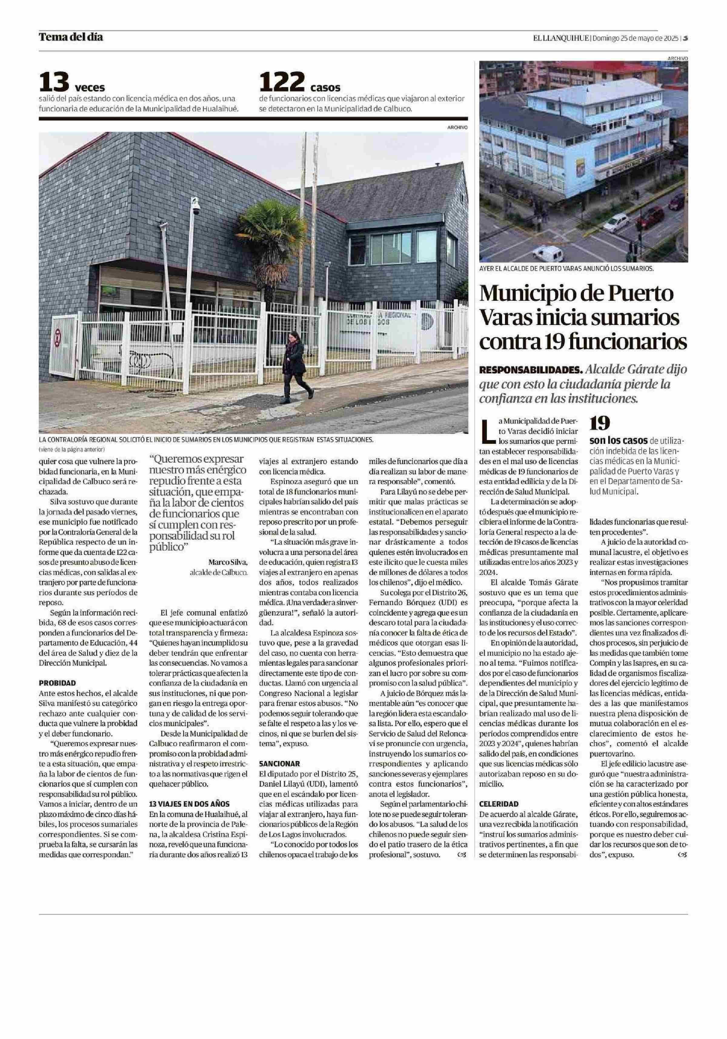 | Título: | Municipio de Puerto Varas inicia sumarios contra 19 funcionarios |