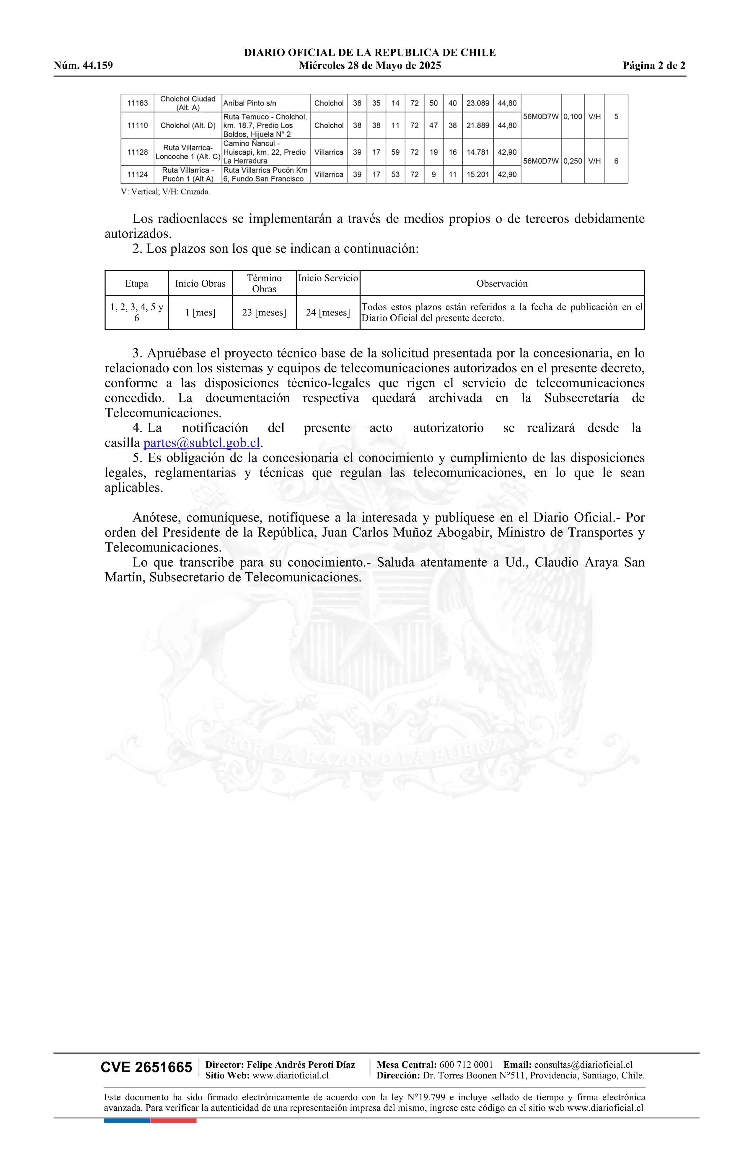 Decreto exento número 296, de 2025.- Modifica concesión de servicio intermedio de telecomunicaciones a la empresa Claro Chile SpA 28-05-2025 Diario Oficial Edición Electrónica |