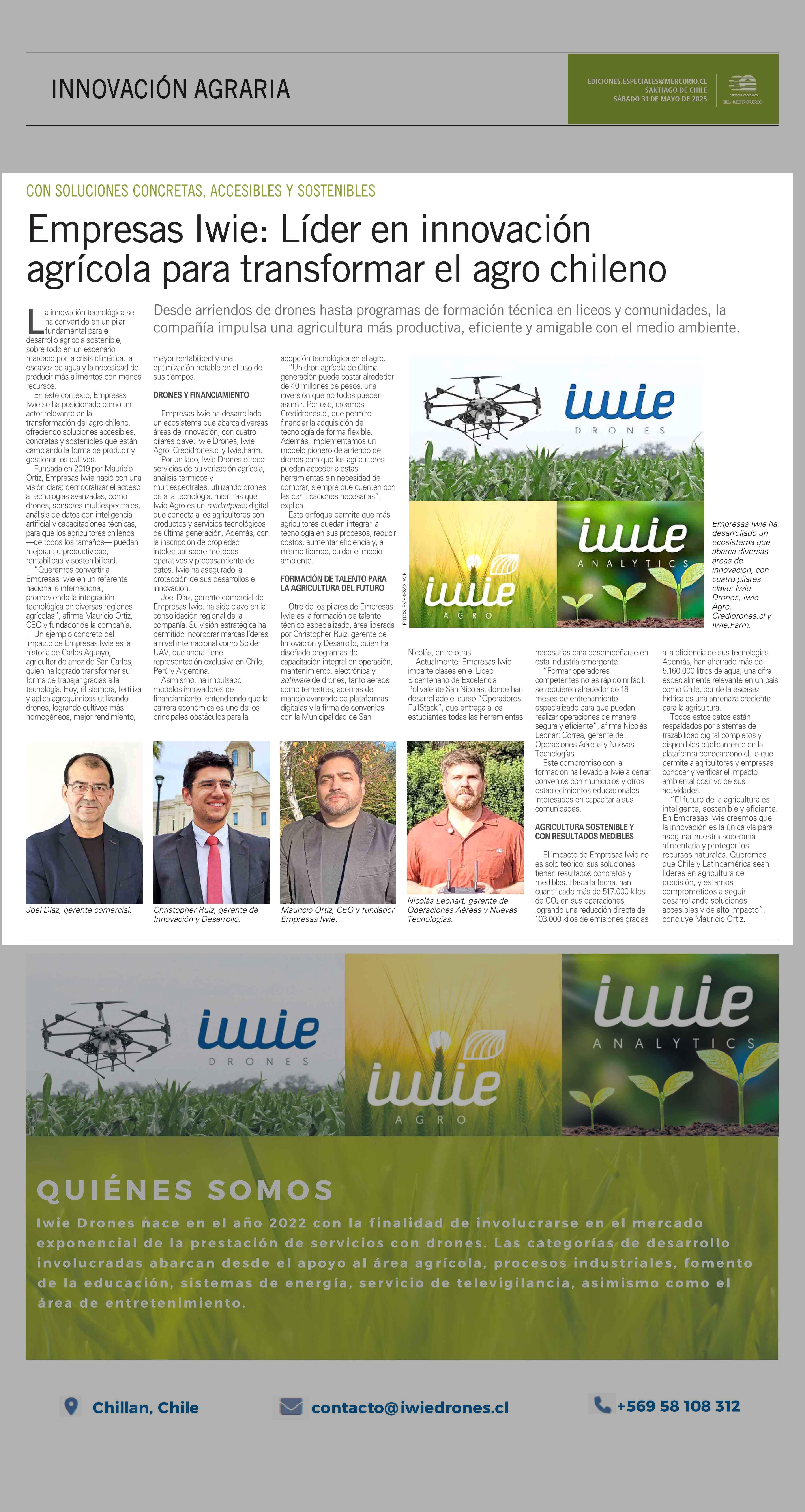 Empresas Iwie: Líder en innovación agrícola para transformar el agro chileno 31-05-2025 El Mercurio |