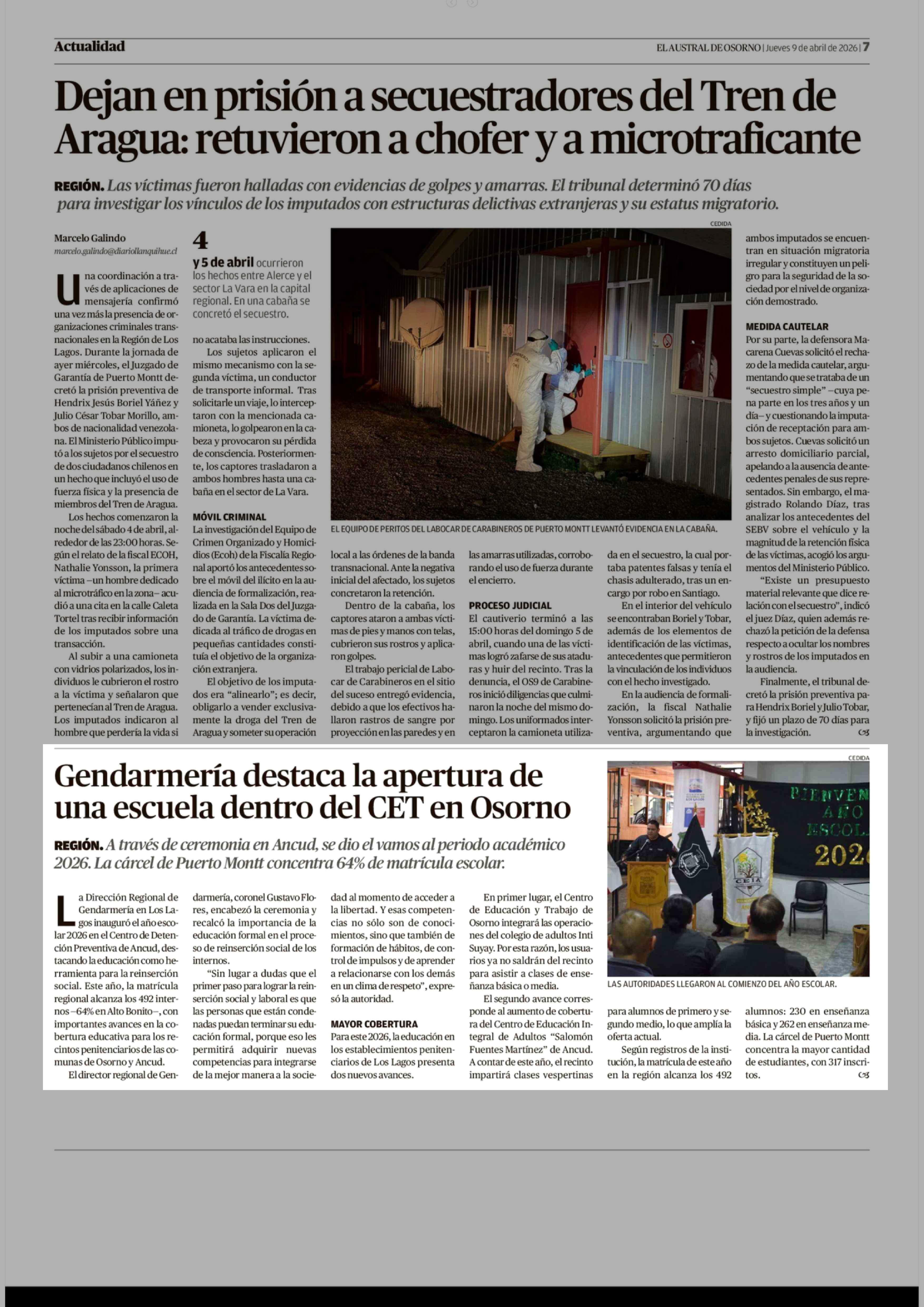 Fuente: El Austral de Osorno (El Austral de Osorno) Página(s): 7