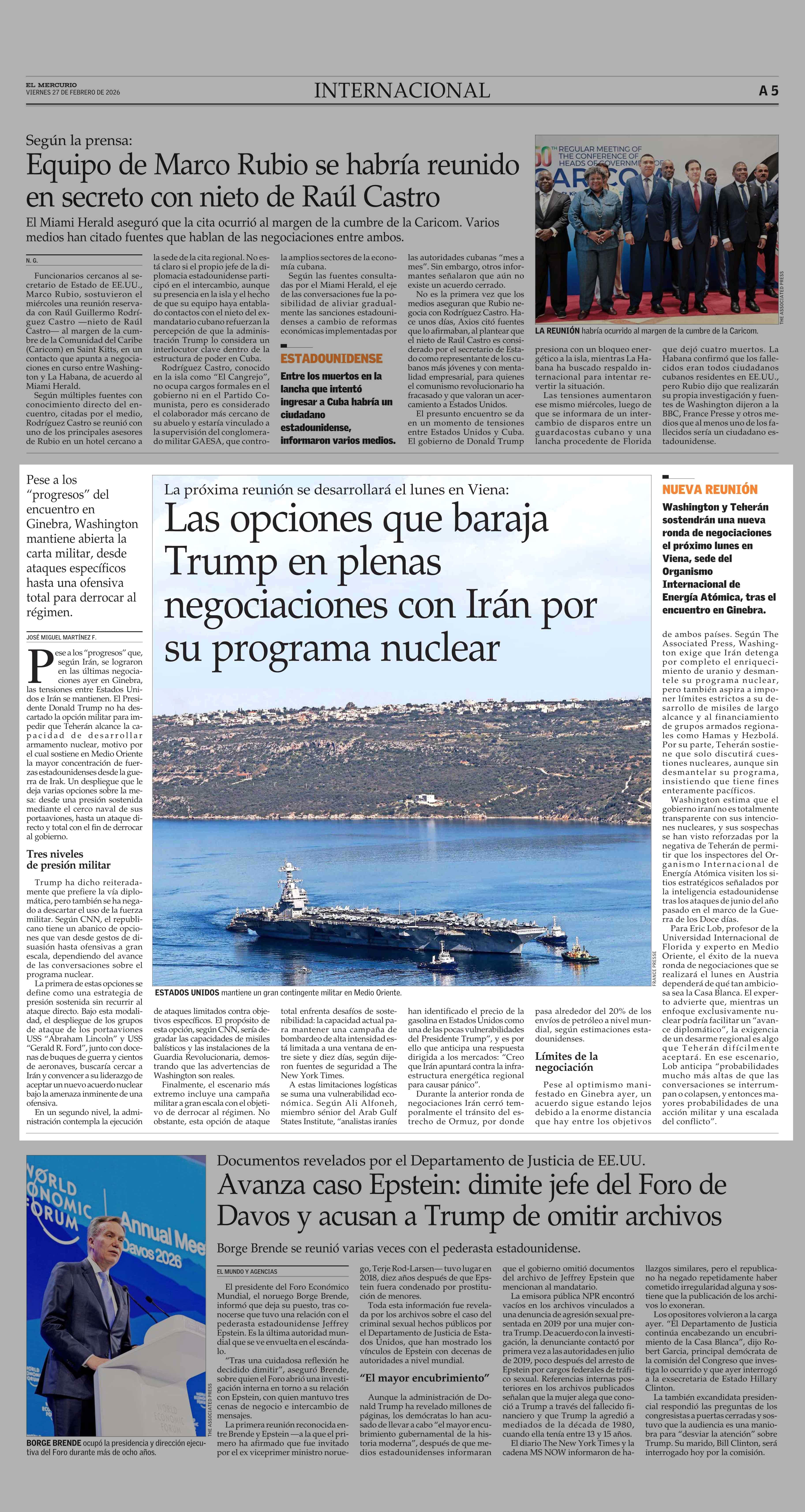 Las opciones que baraja Trump en plenas negociaciones con Irán por su programa nuclear 27-02-2026 El Mercurio |