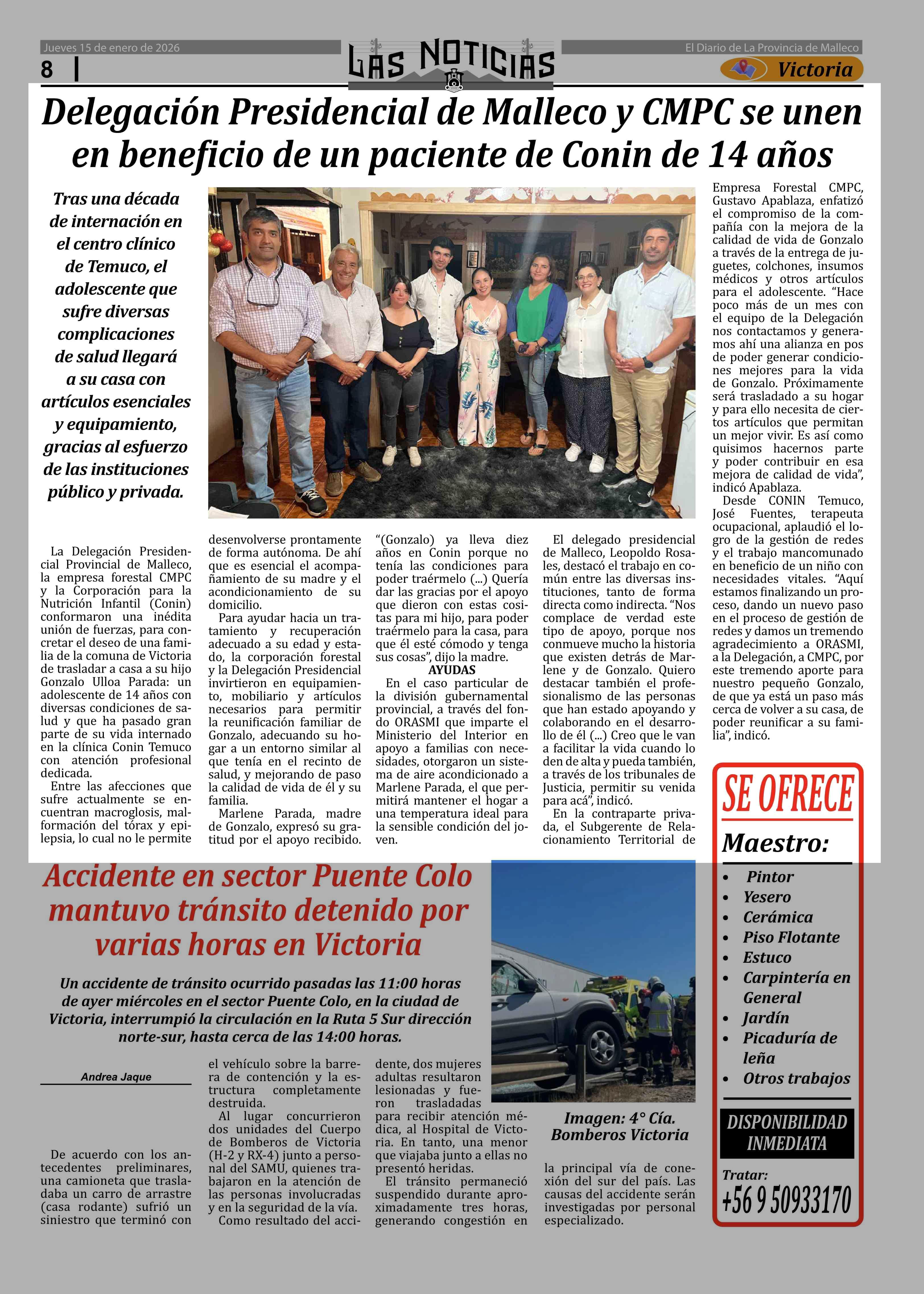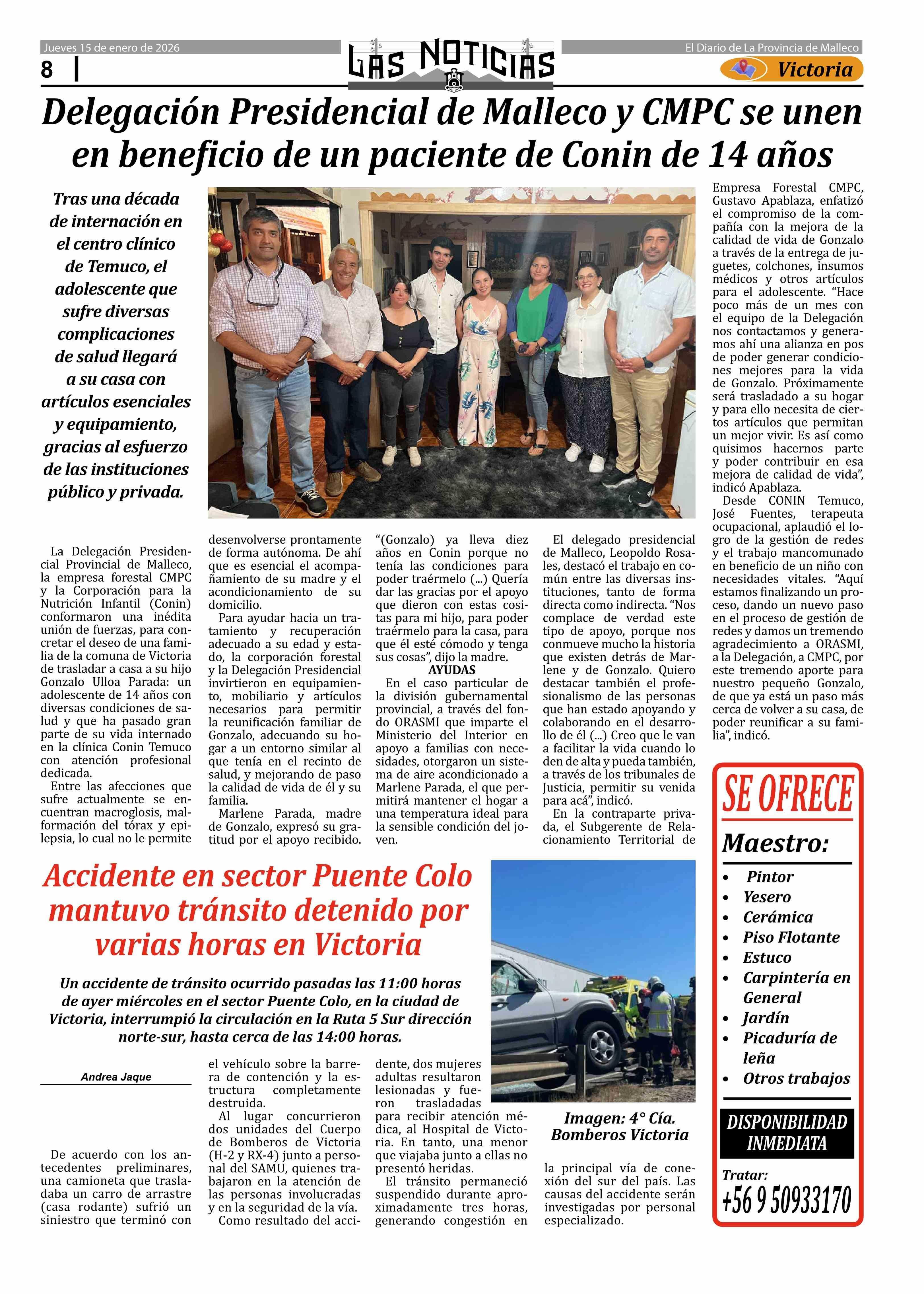 Fecha: 15-01-2026 Sector: Noticia general Región: Región de la Araucanía