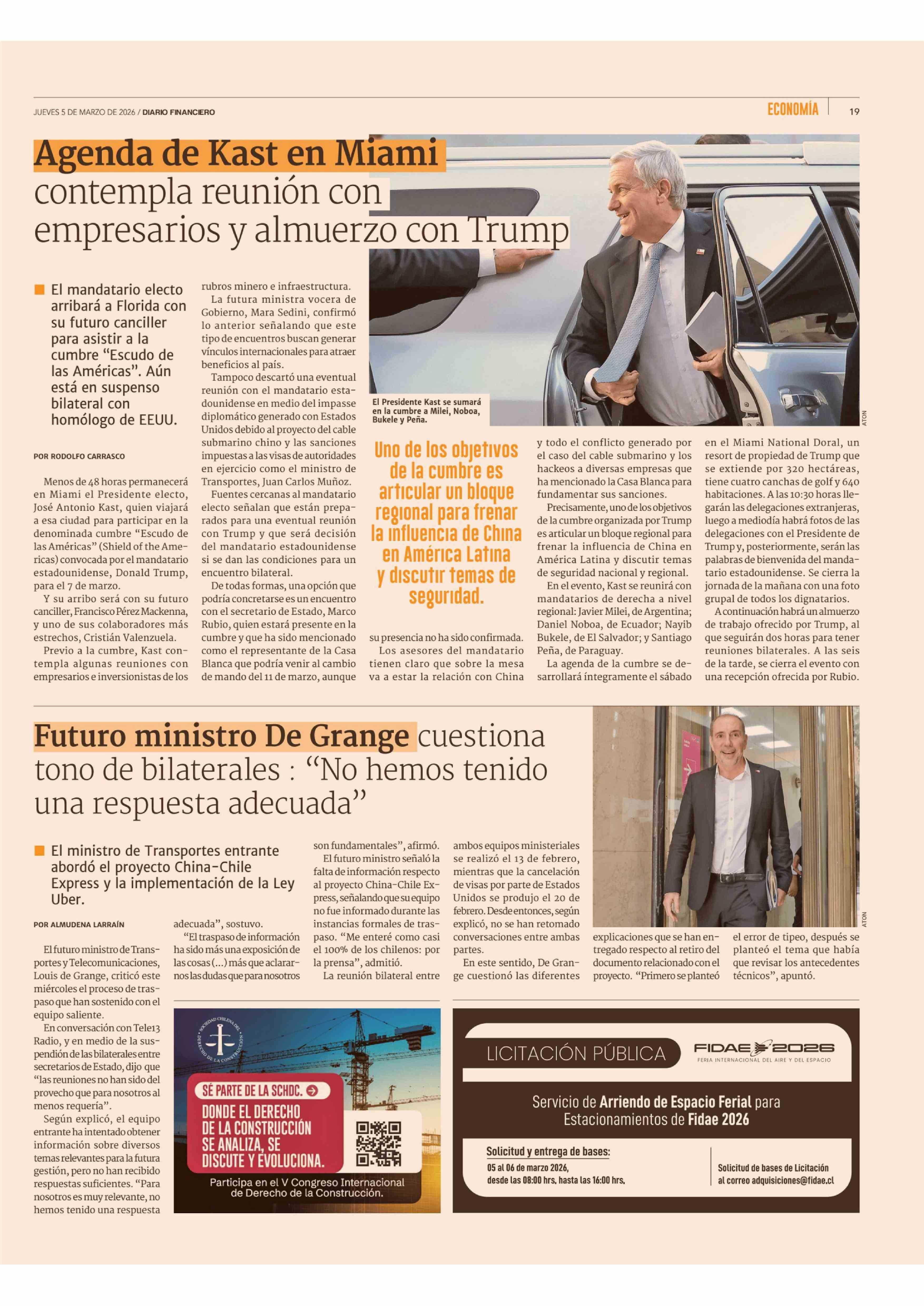 Aviso Licitaciones: Servicio de Arriendo de Espacio Ferial para Estacionamientos de Fidae 2026 05-03-2026 Diario Financiero |