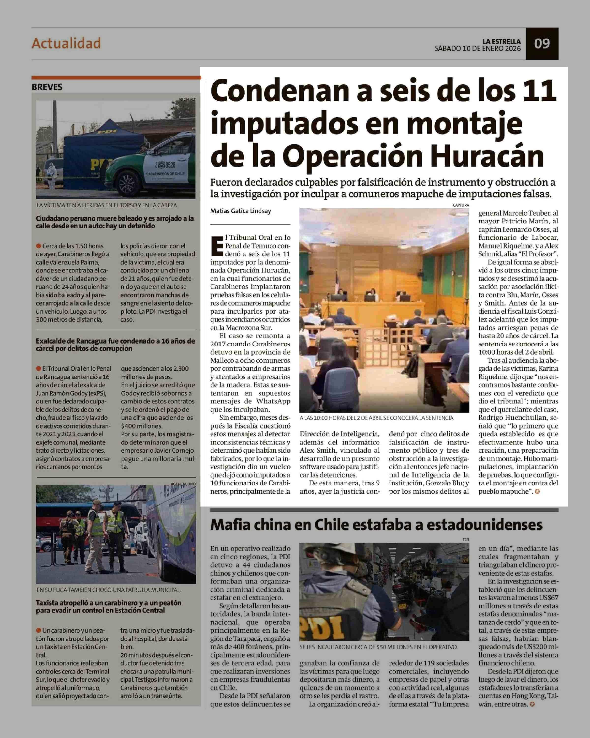 Condenan a seis de los 11 imputados en montaje de la Operación Huracán 10-01-2026 La Estrella de Chiloé |