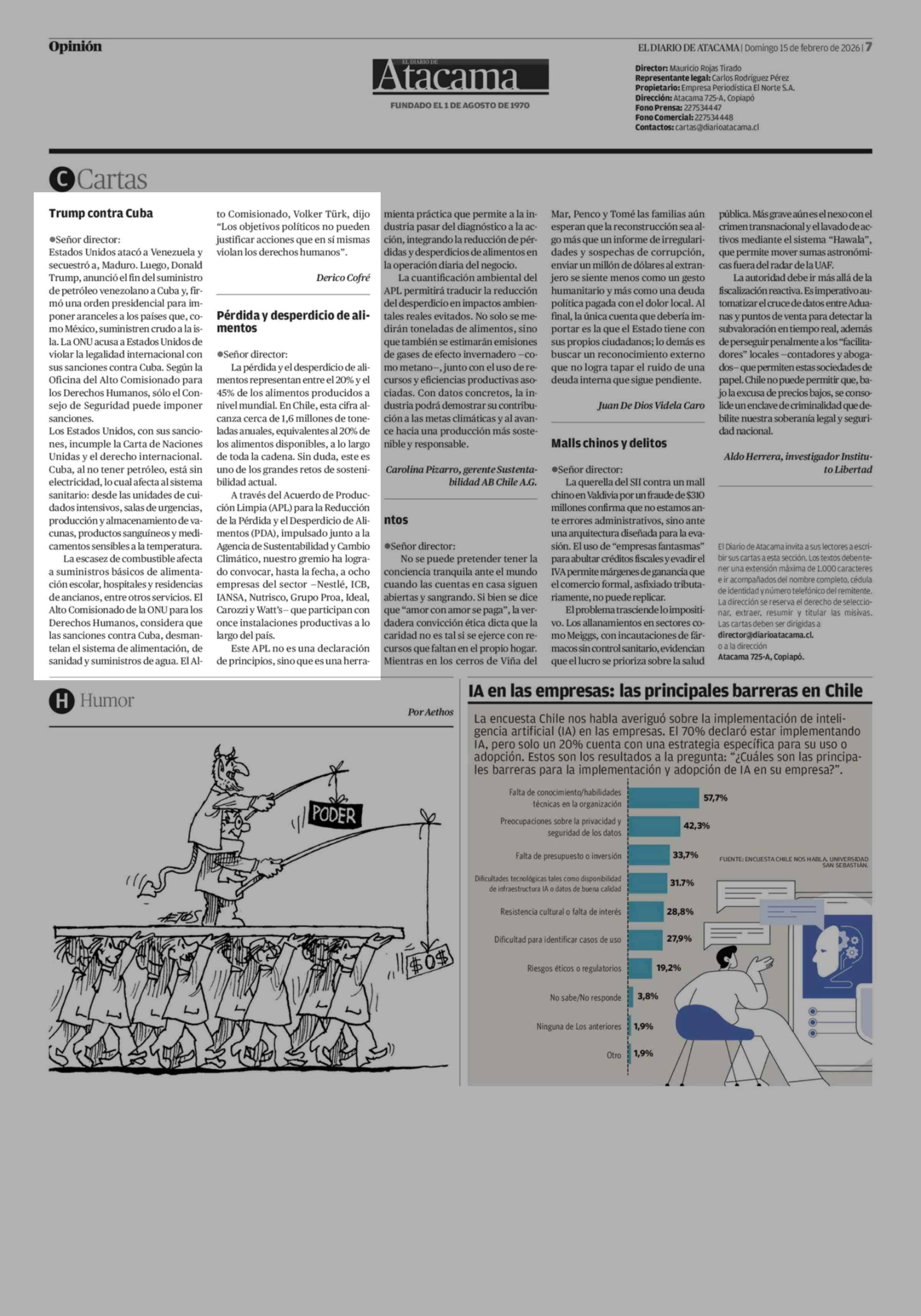 Cartas: Trump contra Cuba 15-02-2026 El Diario de Atacama |
