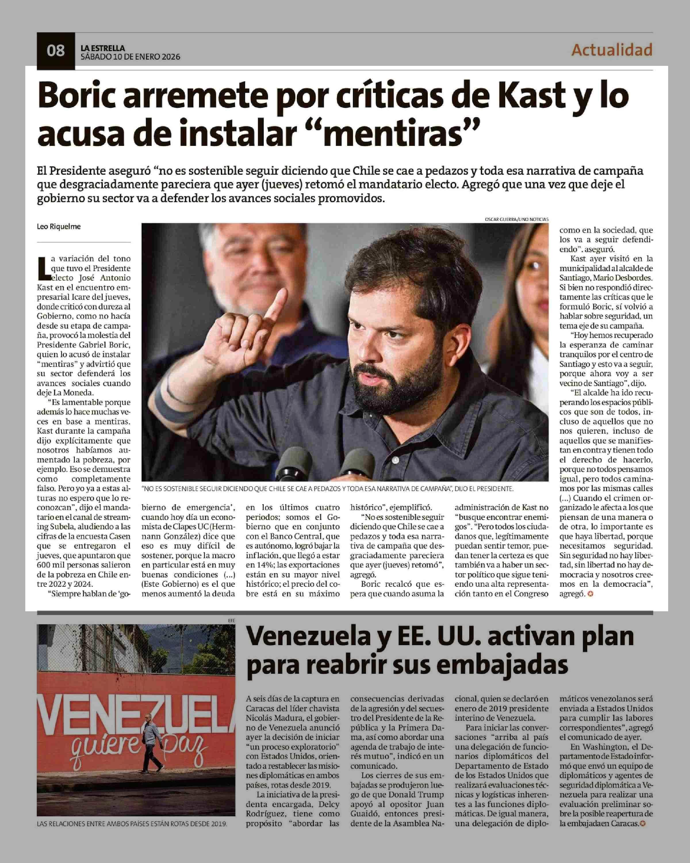 Título: Boric arremete por críticas de Kast y lo acusa de instalar "mentiras"