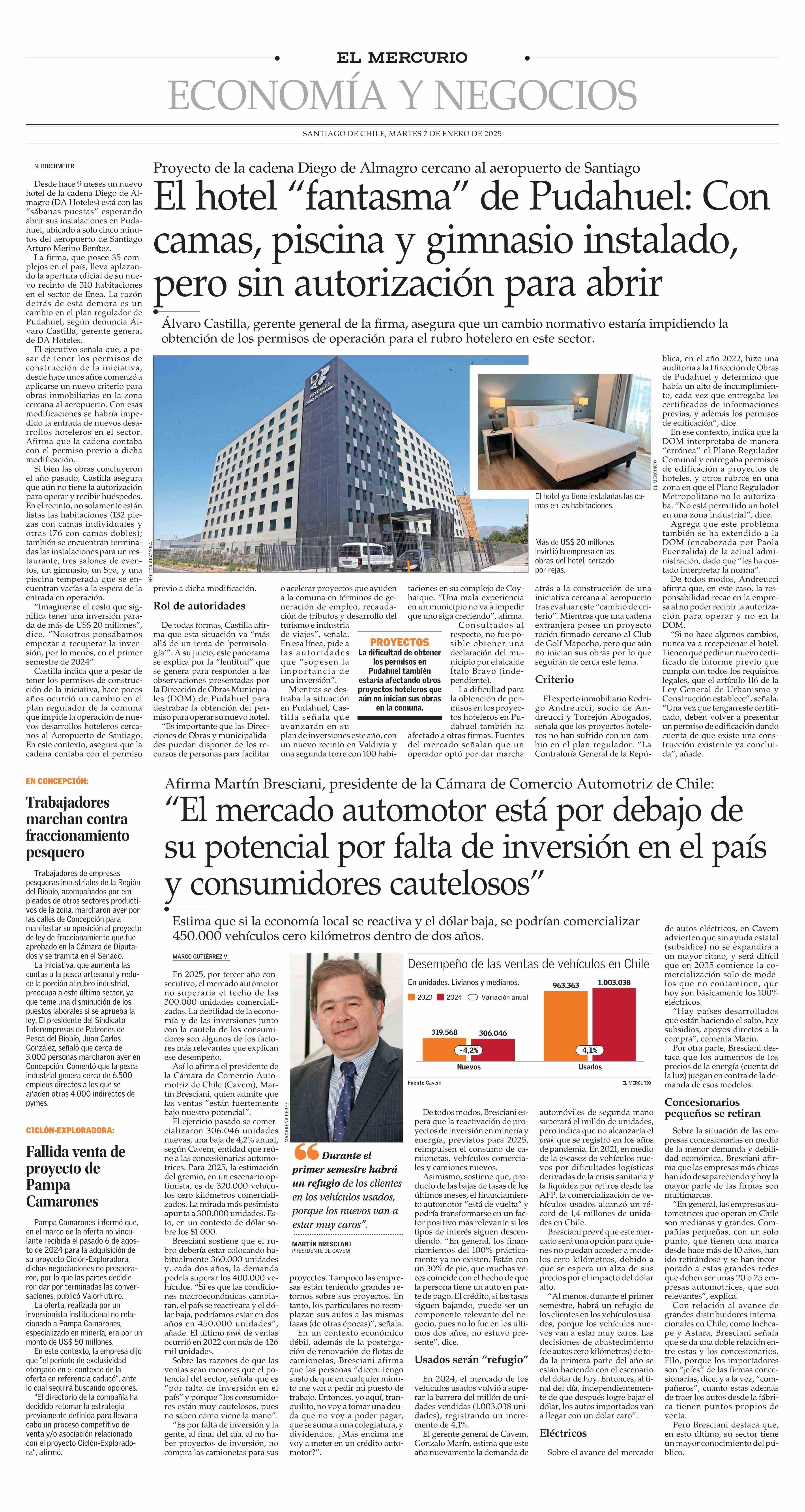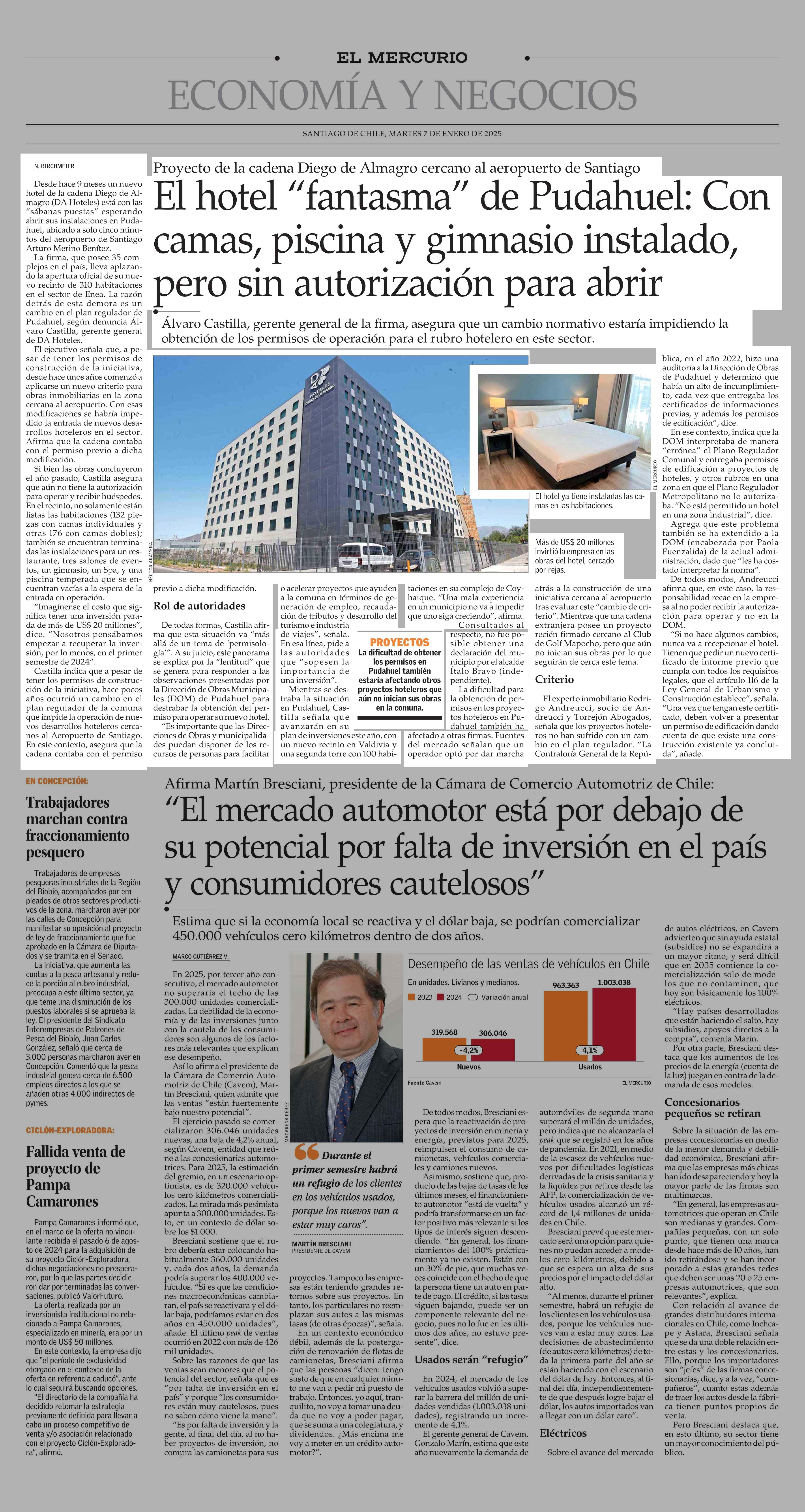 El hotel “fantasma” de Pudahuel: Con camas, piscina y gimnasio instalado, pero sin autorización para abrir 07-01-2025 El Mercurio |