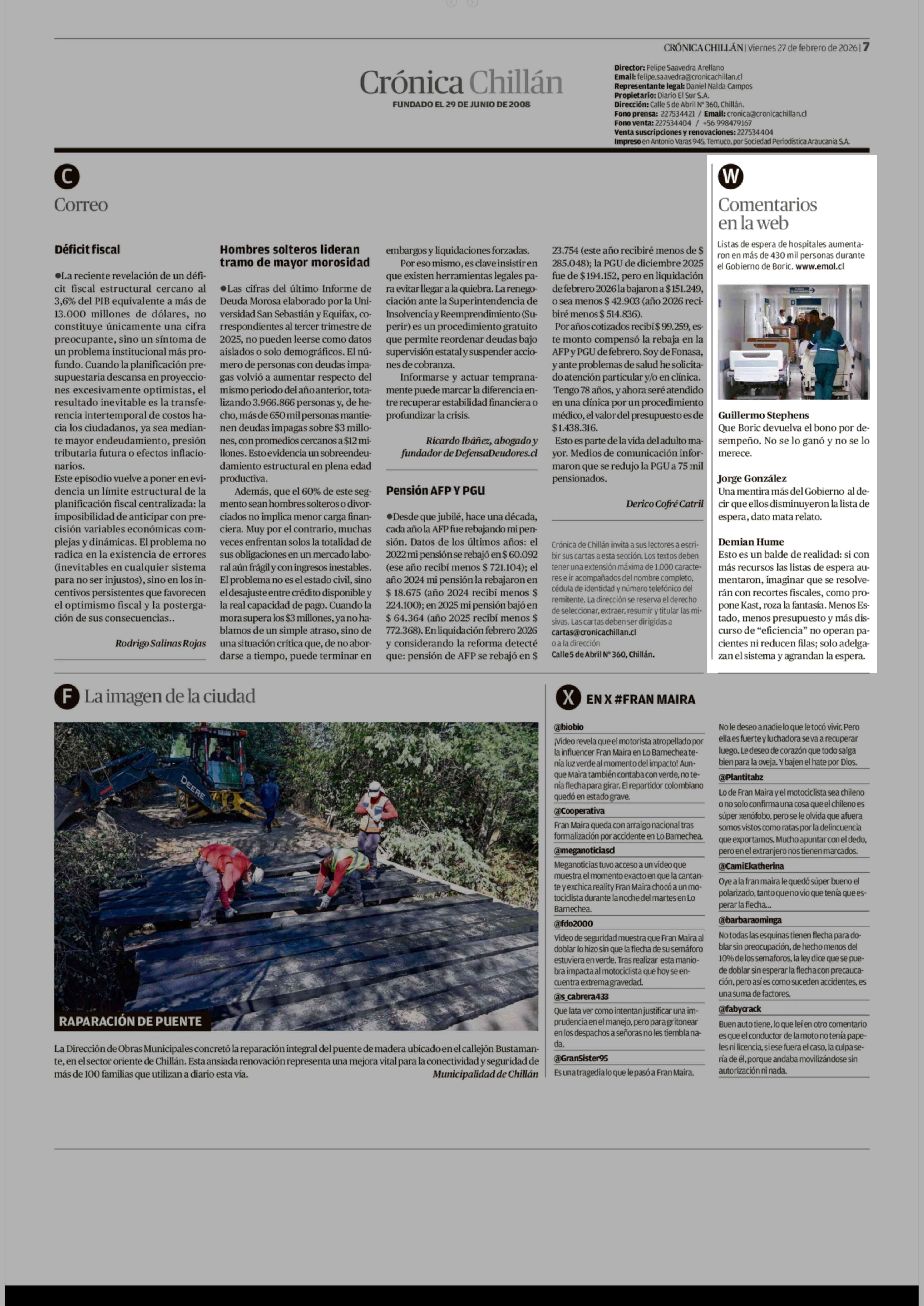 Fecha: 27-02-2026 Sector: Noticia general Región: Región del Ñuble