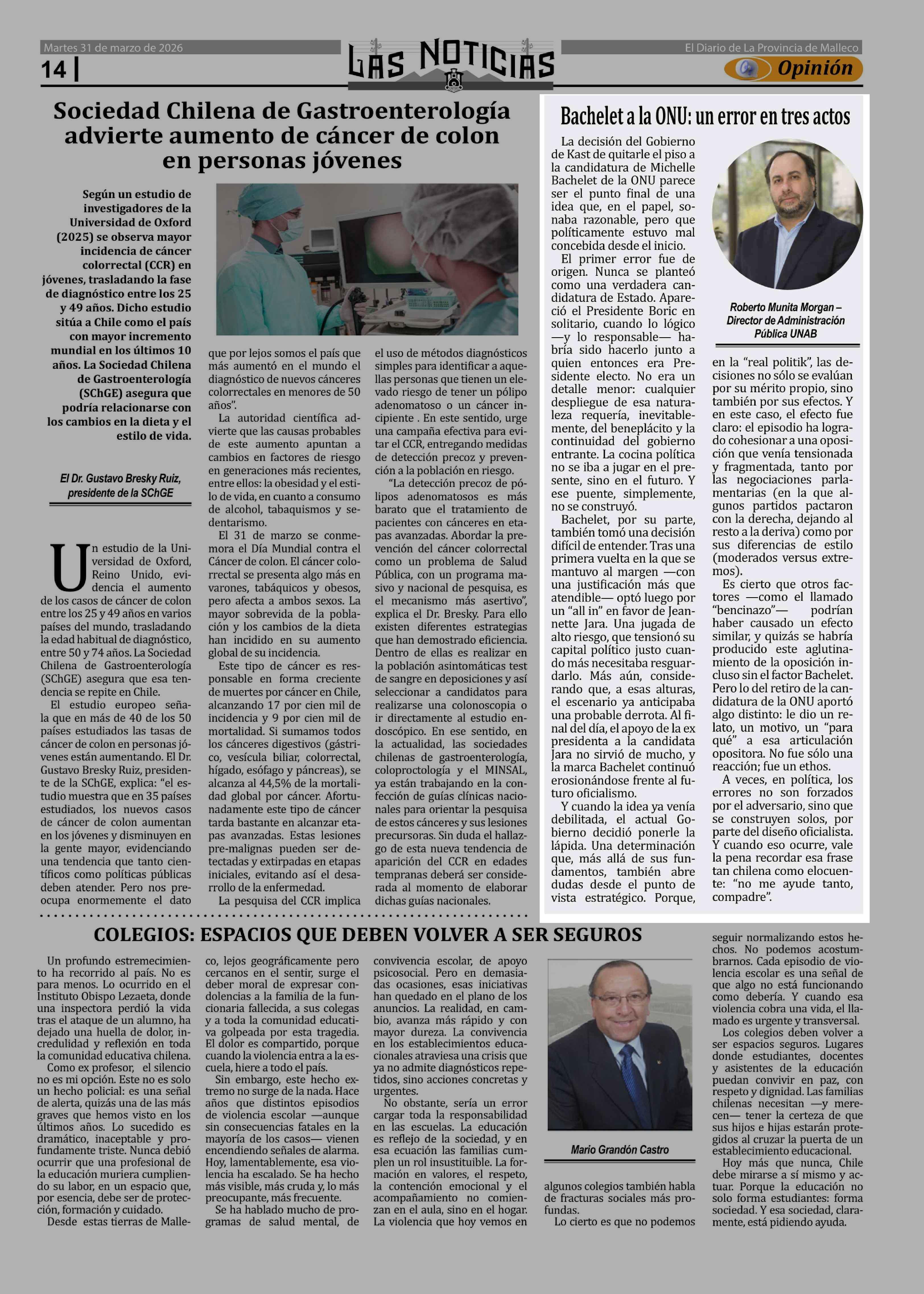 Columnas de Opinión: Bachelet a la ONU: un error en tres actos 31-03-2026 Las Noticias |