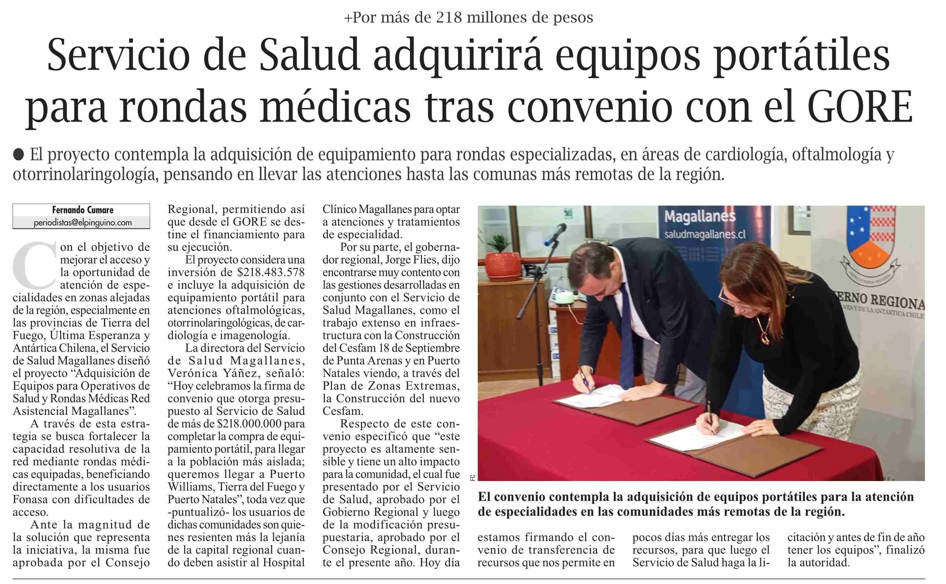Servicio de Salud adquirirá equipos portátiles para rondas médicas tras convenio con el GORE 15-05-2025 El Pingüino |