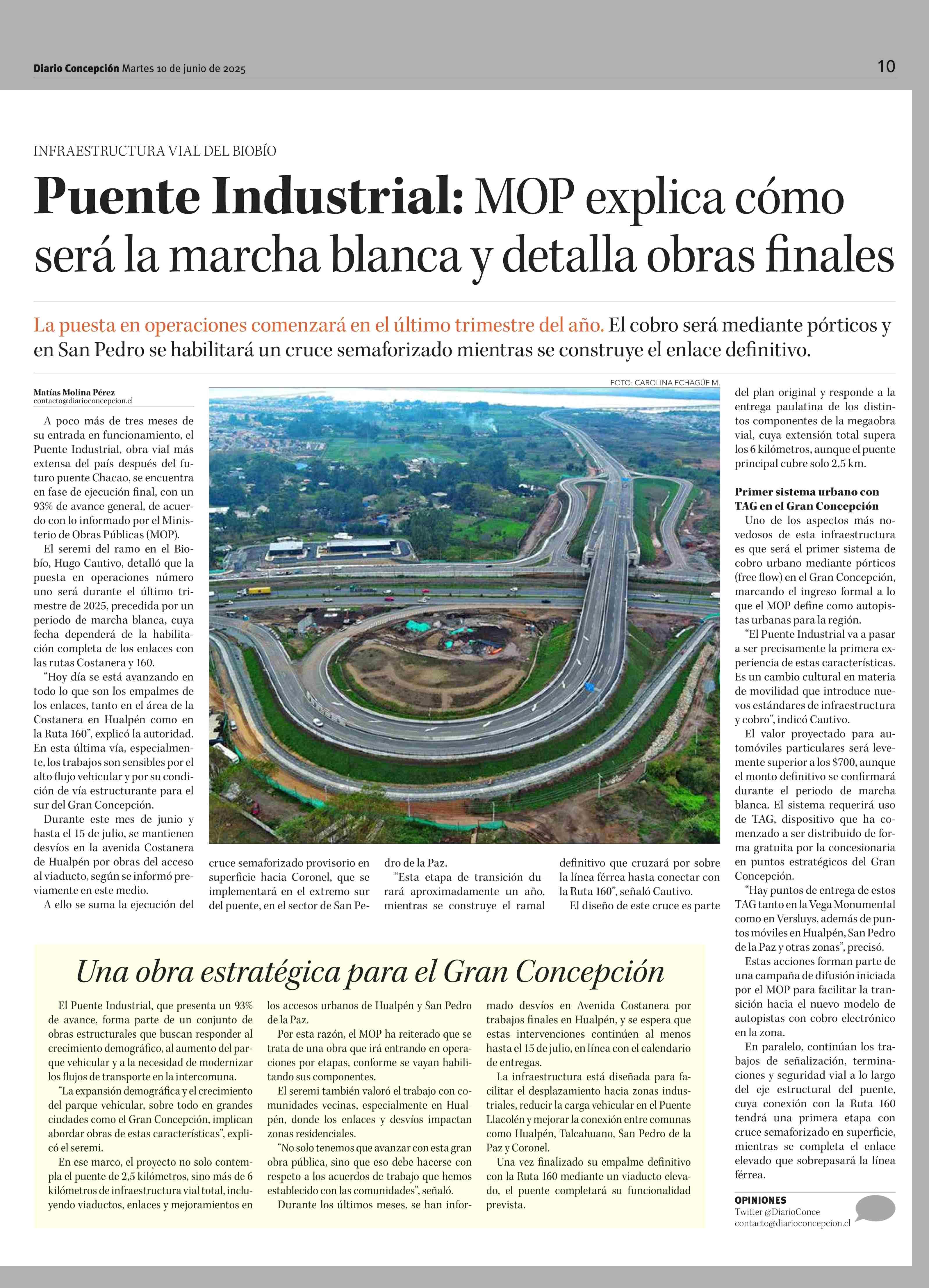 MOP explica cómo será la marcha blanca y detalla obras finales 10-06-2025 Diario Concepción |