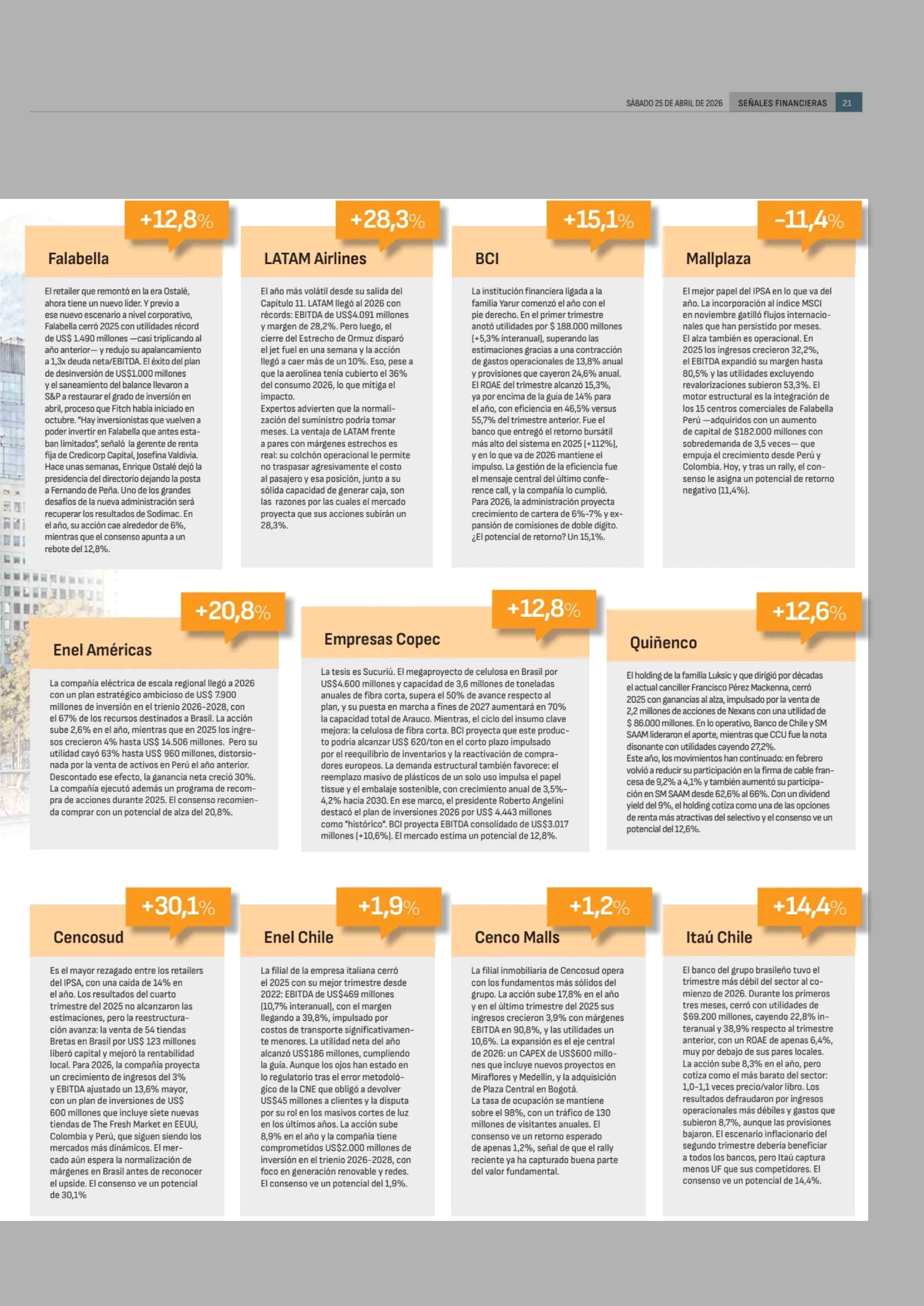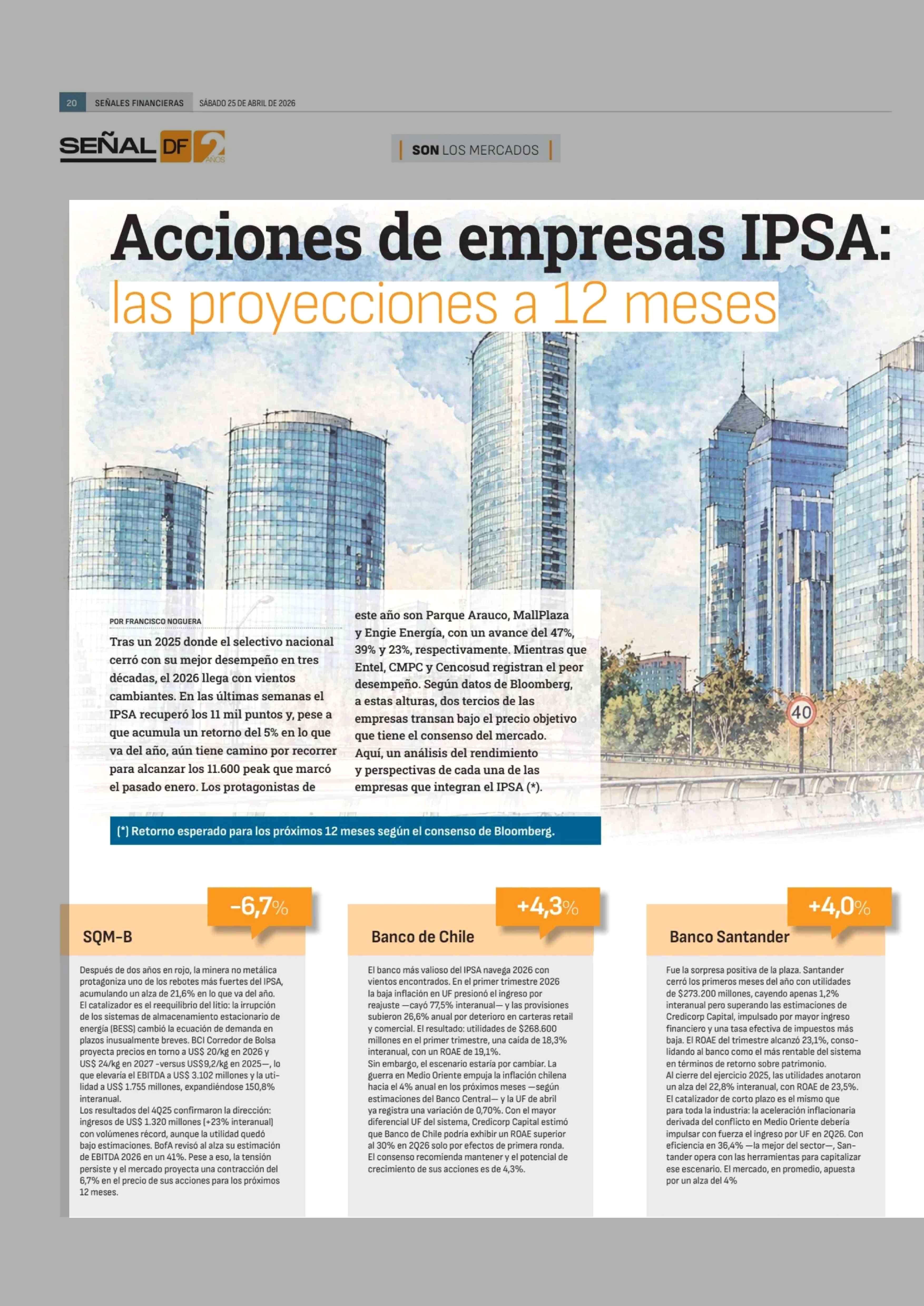 Título: Acciones de empresas IPSA: las proyecciones a 12 meses