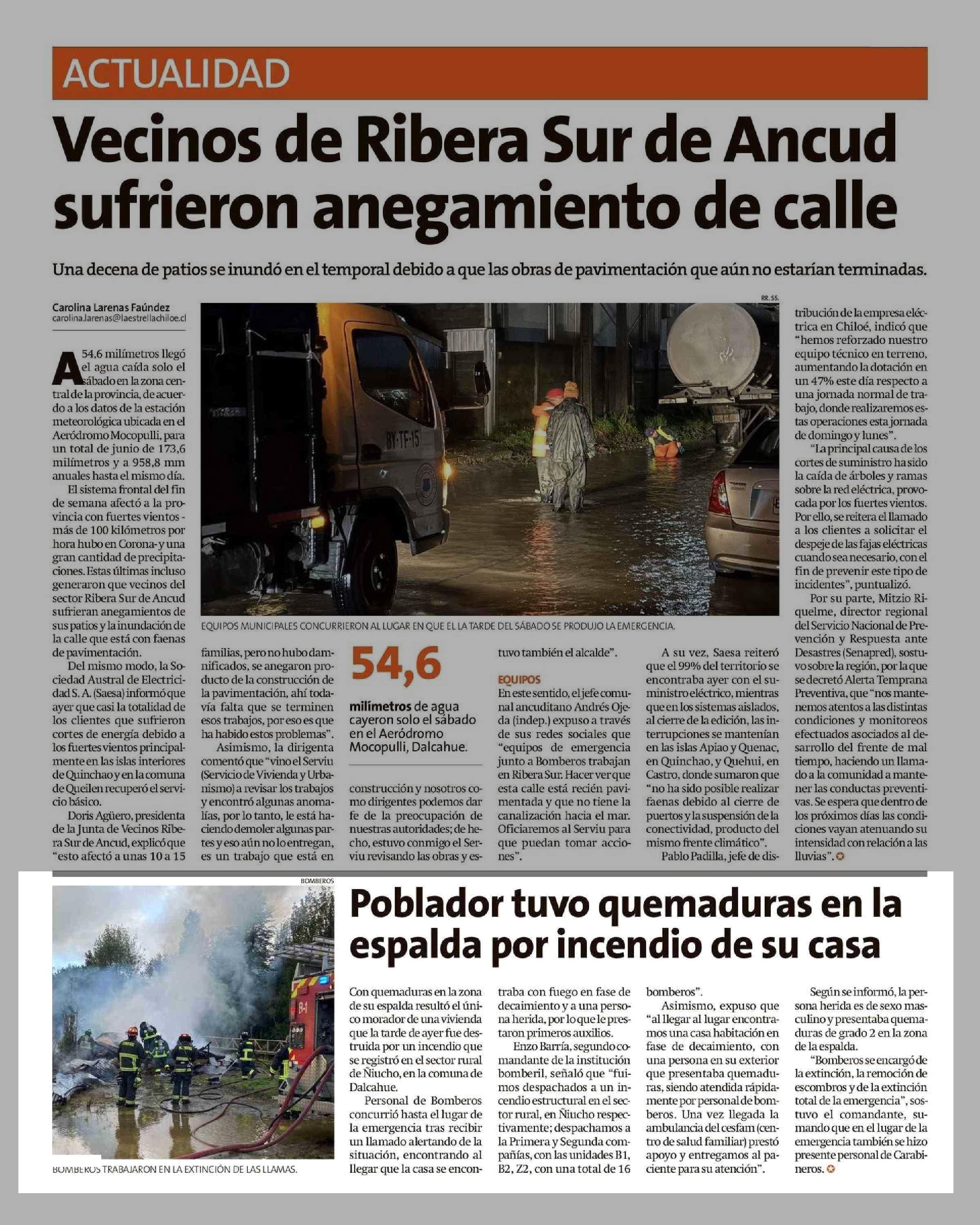 Poblador tuvo quemaduras en la espalda por incendio de su casa 16-06-2025 La Estrella de Chiloé |