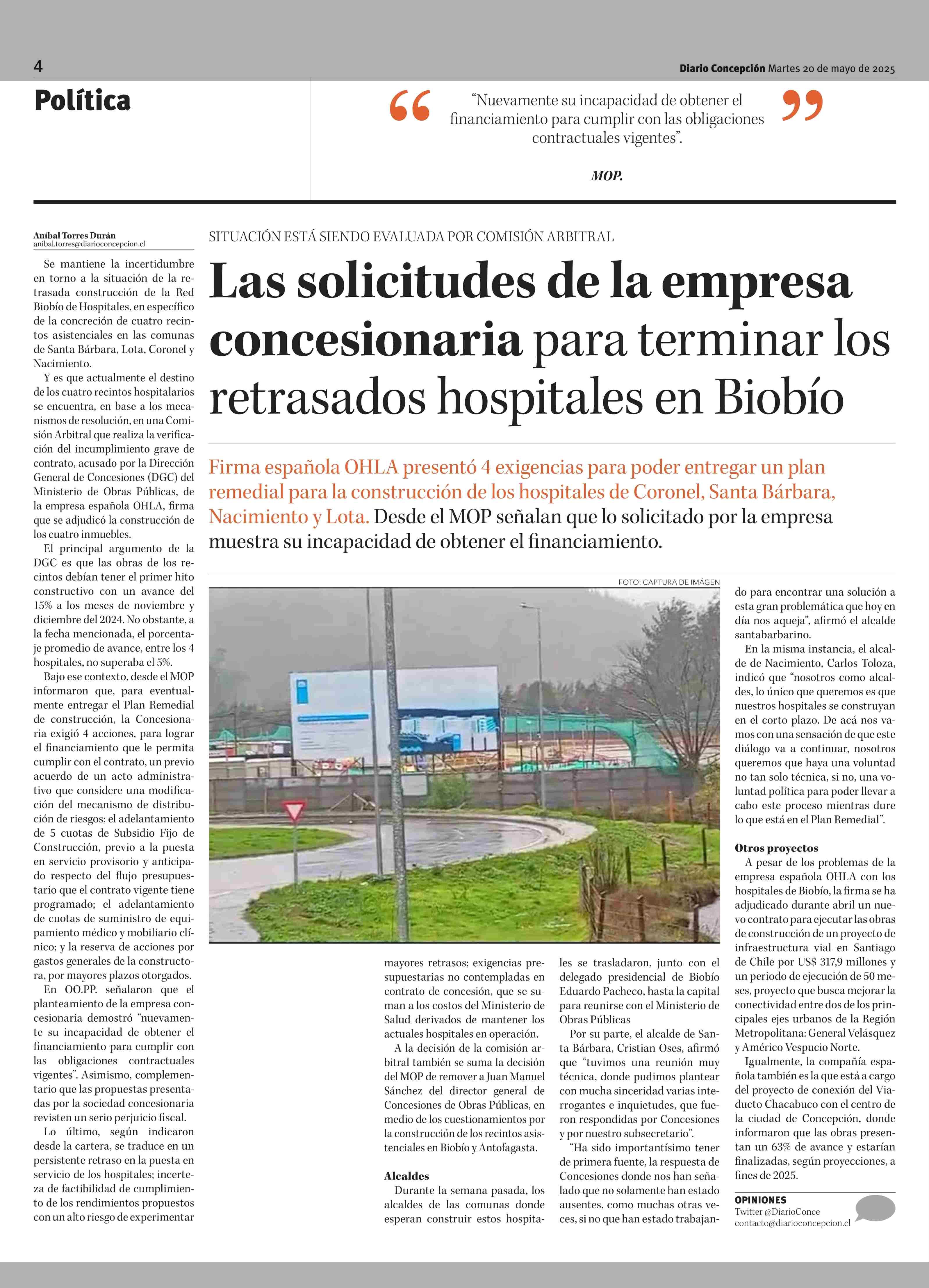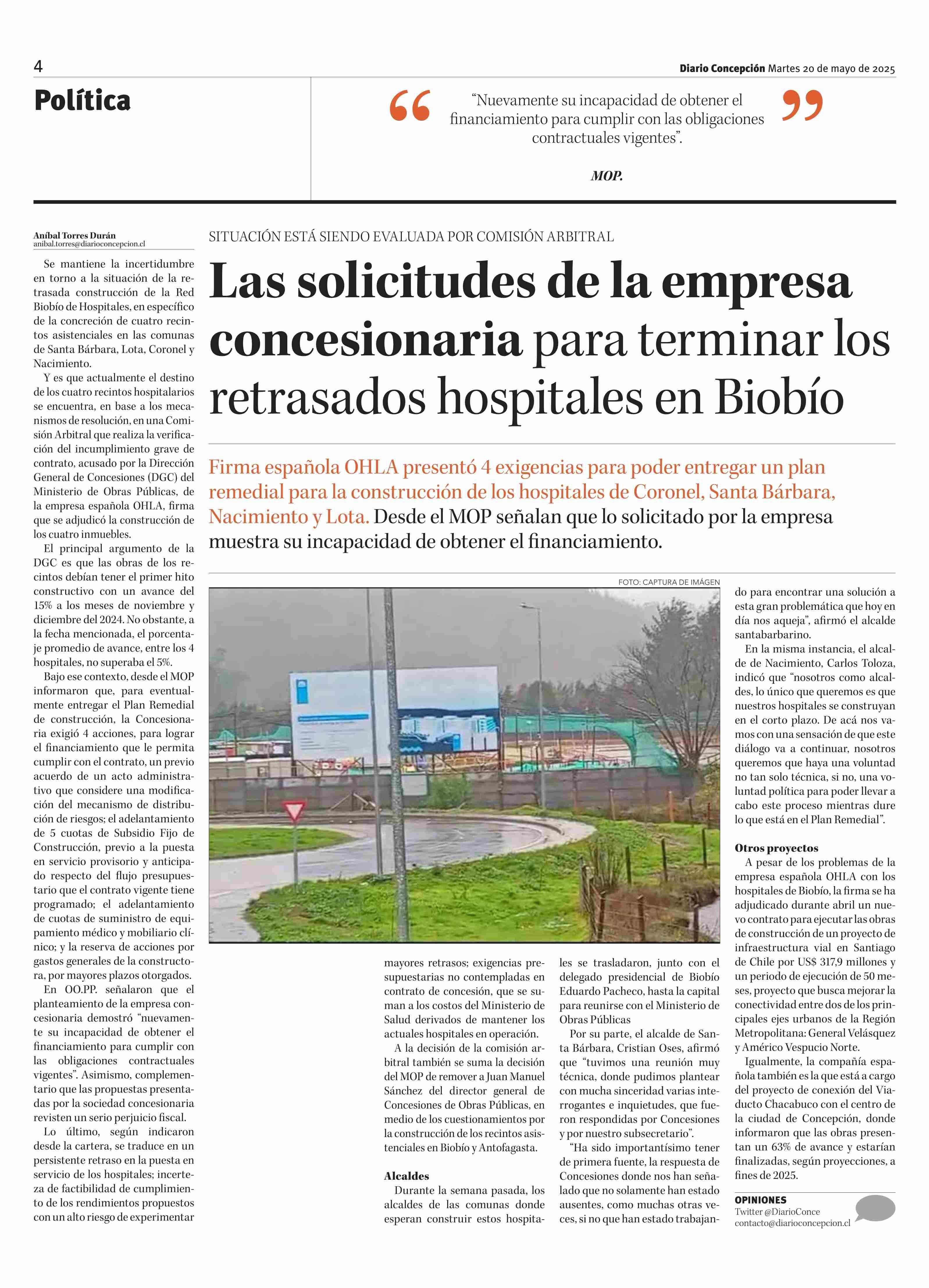 Título: Las solicitudes de la empresa concesionaria para terminar los retrasados hospitales en Biobío