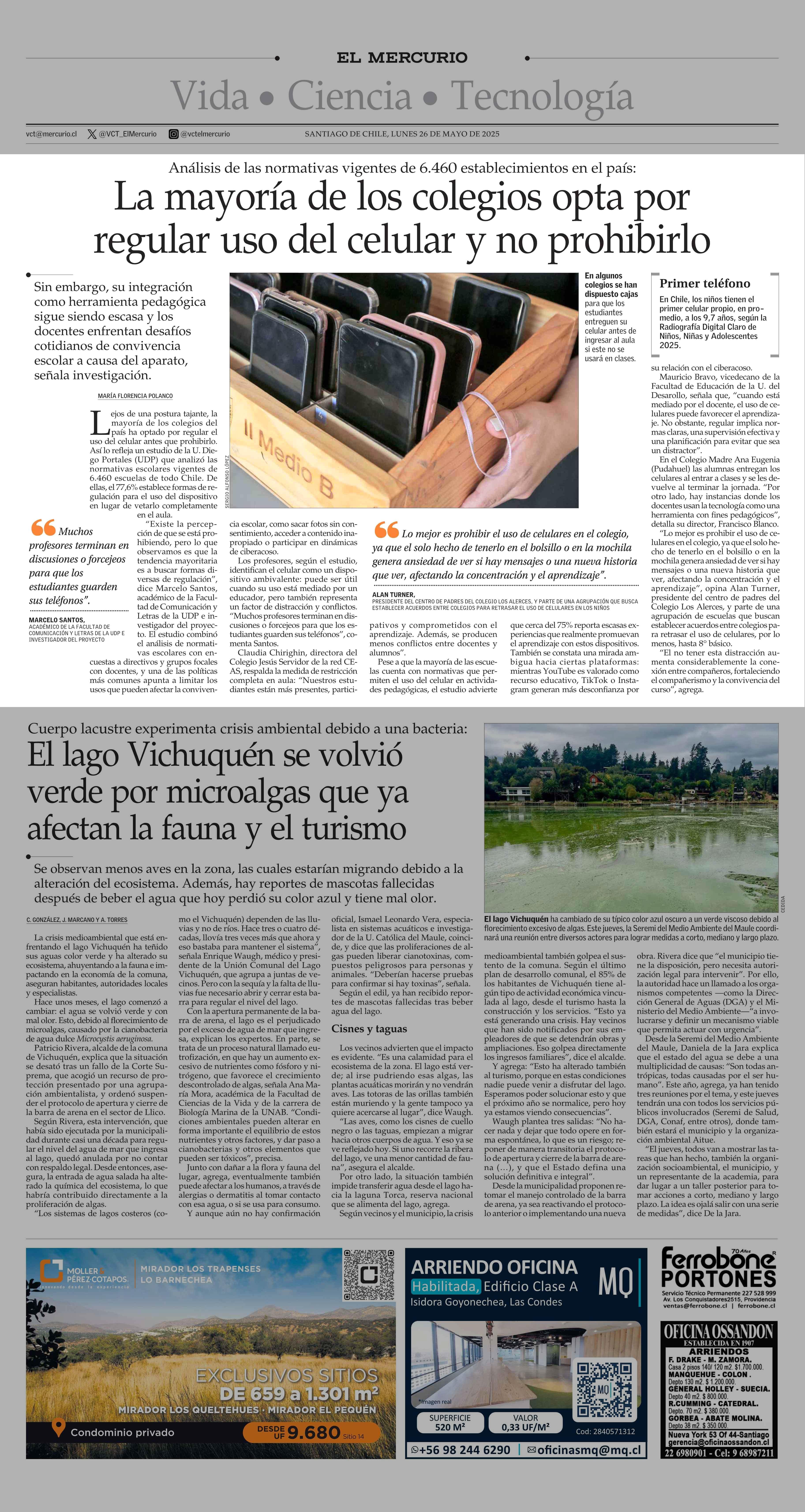 La mayoría de los colegios opta por regular uso del celular y no prohibirlo 26-05-2025 El Mercurio |