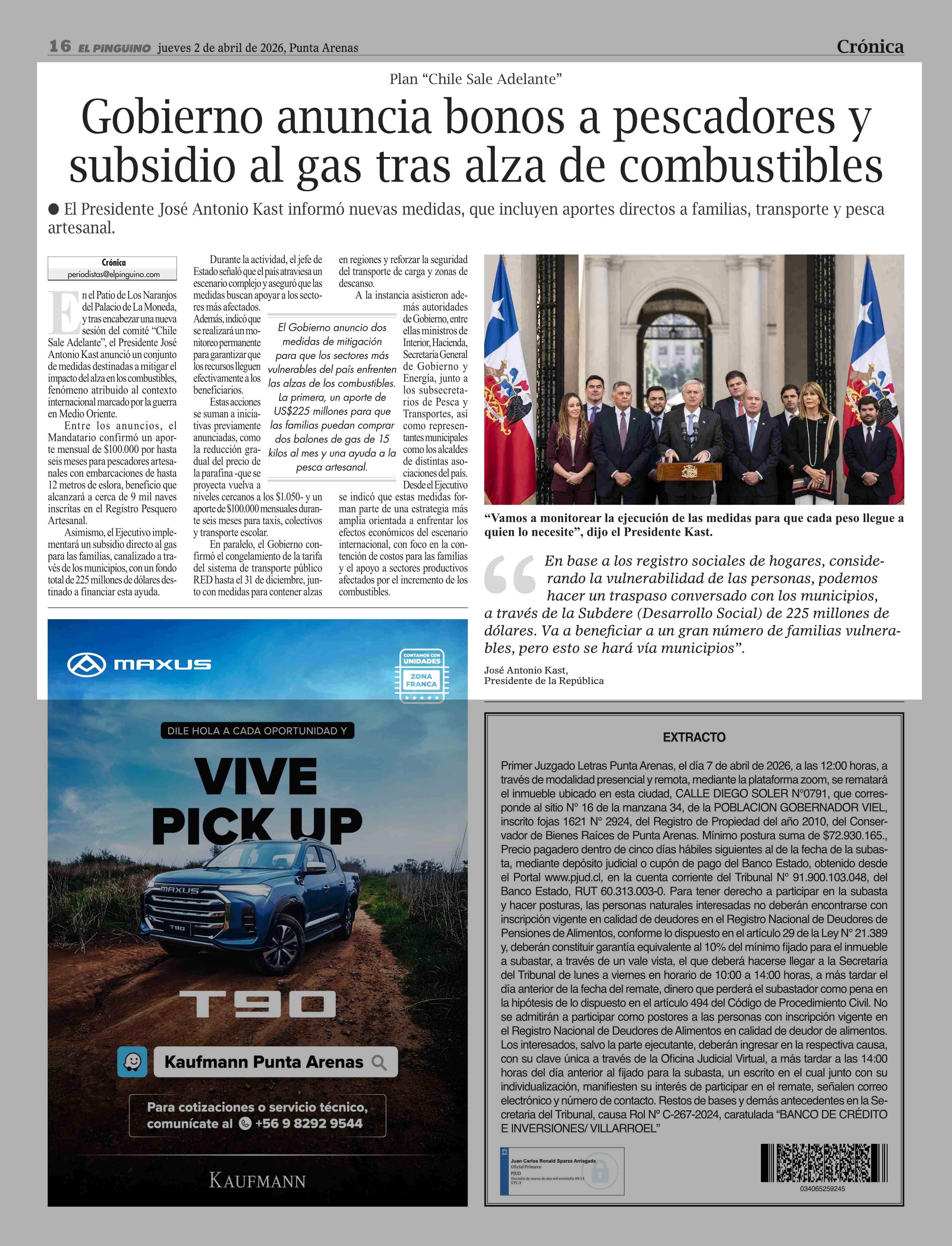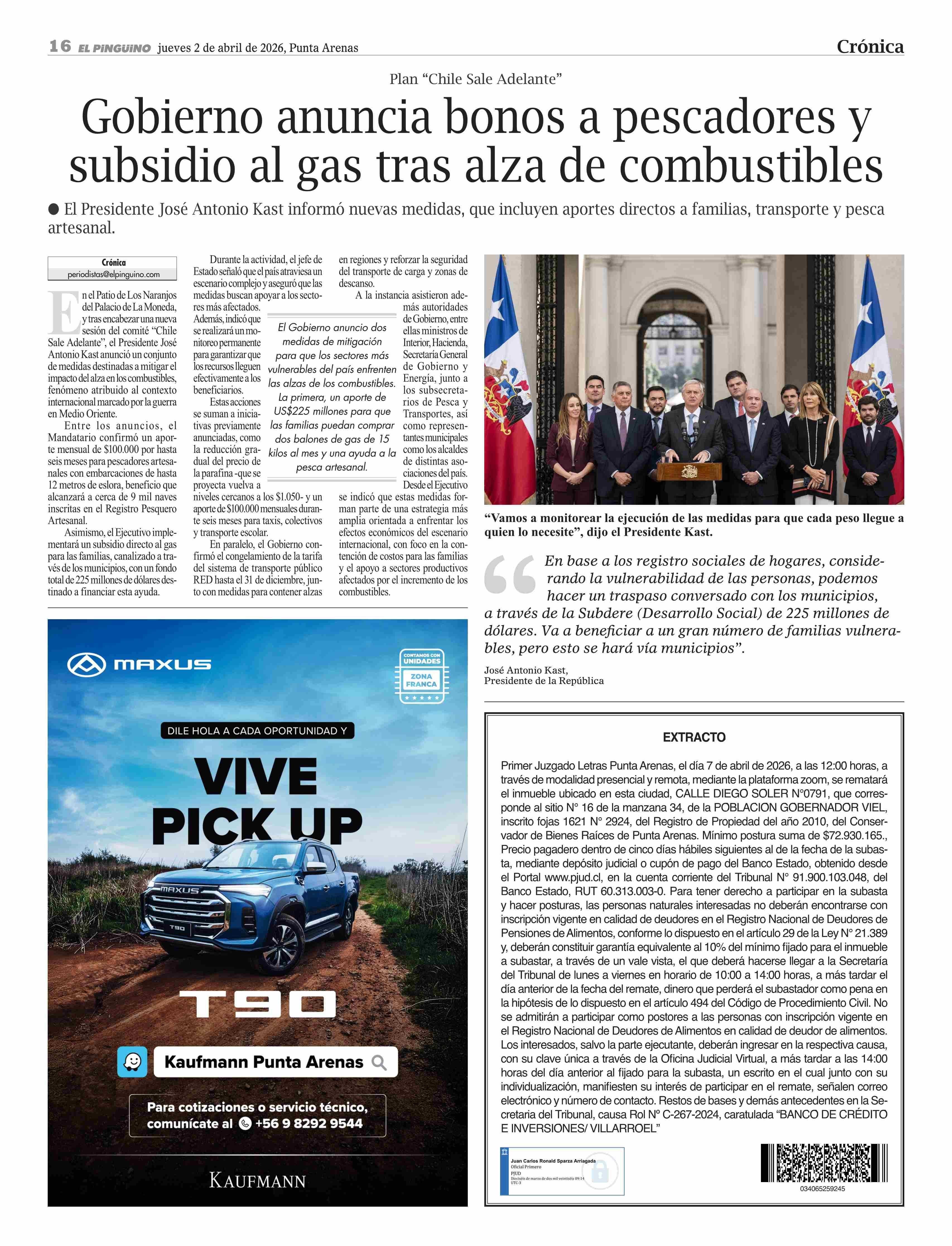 Fecha: 02-04-2026 Sector: Noticia general Región: Región de Magallanes y de la Antártica Chilena