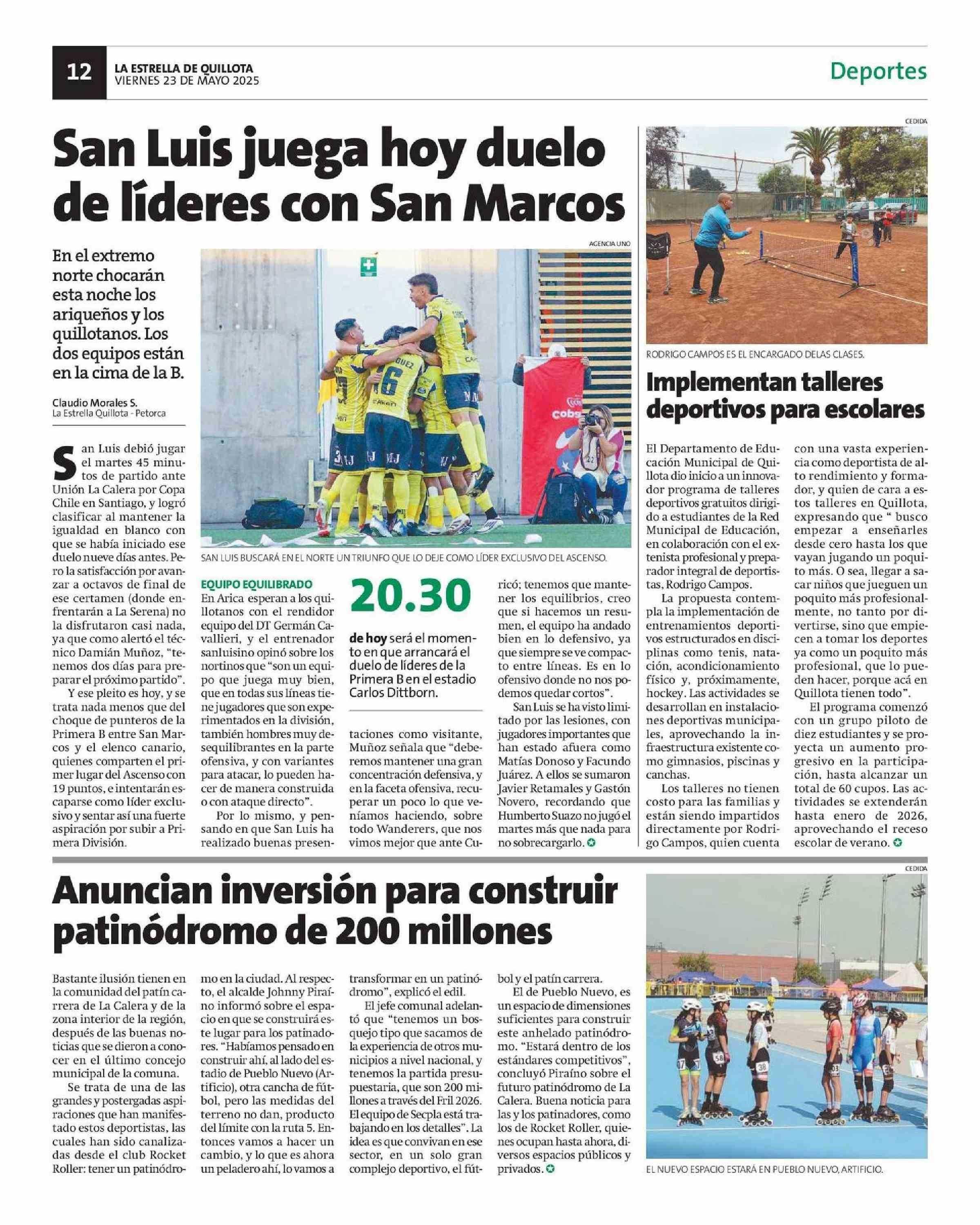 Implementan talleres deportivos para escolares 23-05-2025 La Estrella de Quillota |