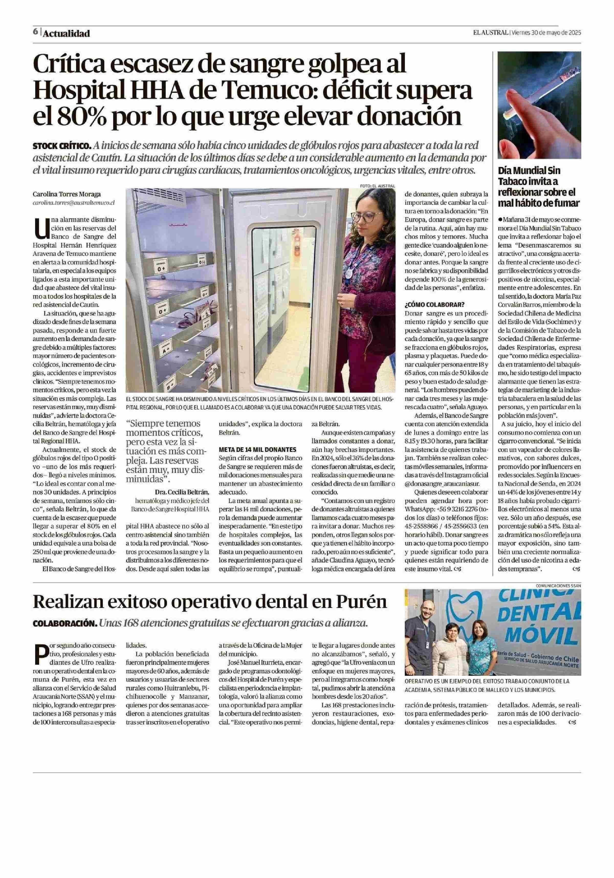 Día Mundial Sin Tabaco invita a reflexionar sobre el de fumar mal hábito 30-05-2025 El Austral de la Araucanía |