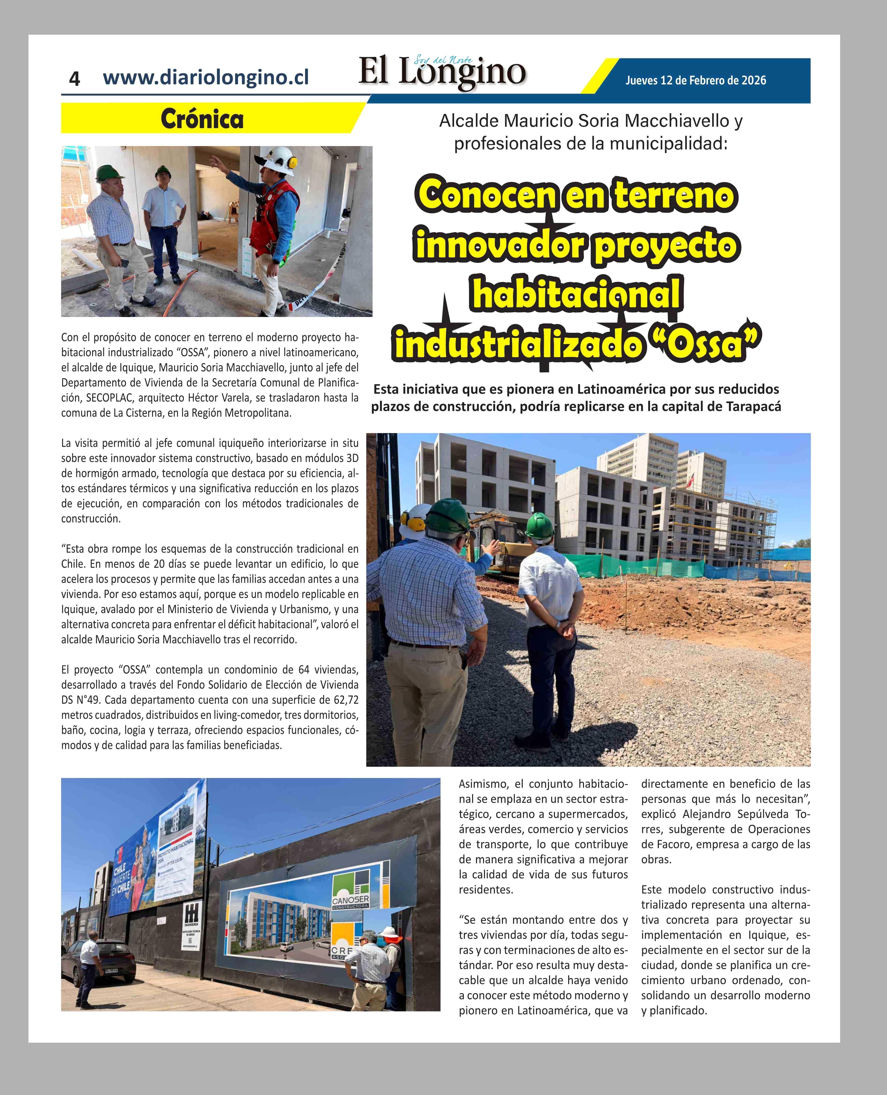 Conocer en terreno innovador proyecto habitacional industrializado "Ossa" 12-02-2026 El Longino |