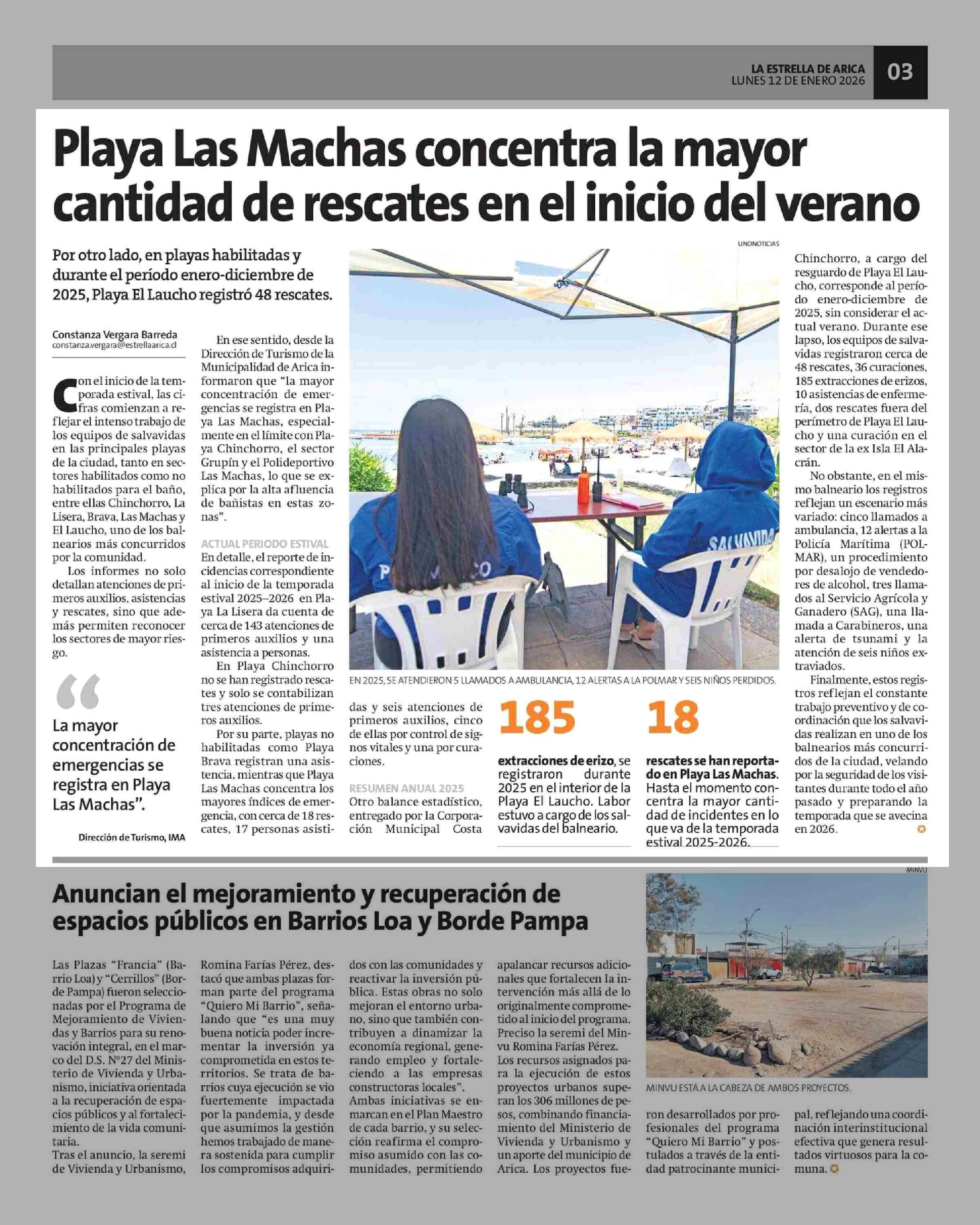 | Fecha: | 12-01-2026 | Sector: | Noticia general | Región: | Región de Arica y Parinacota |