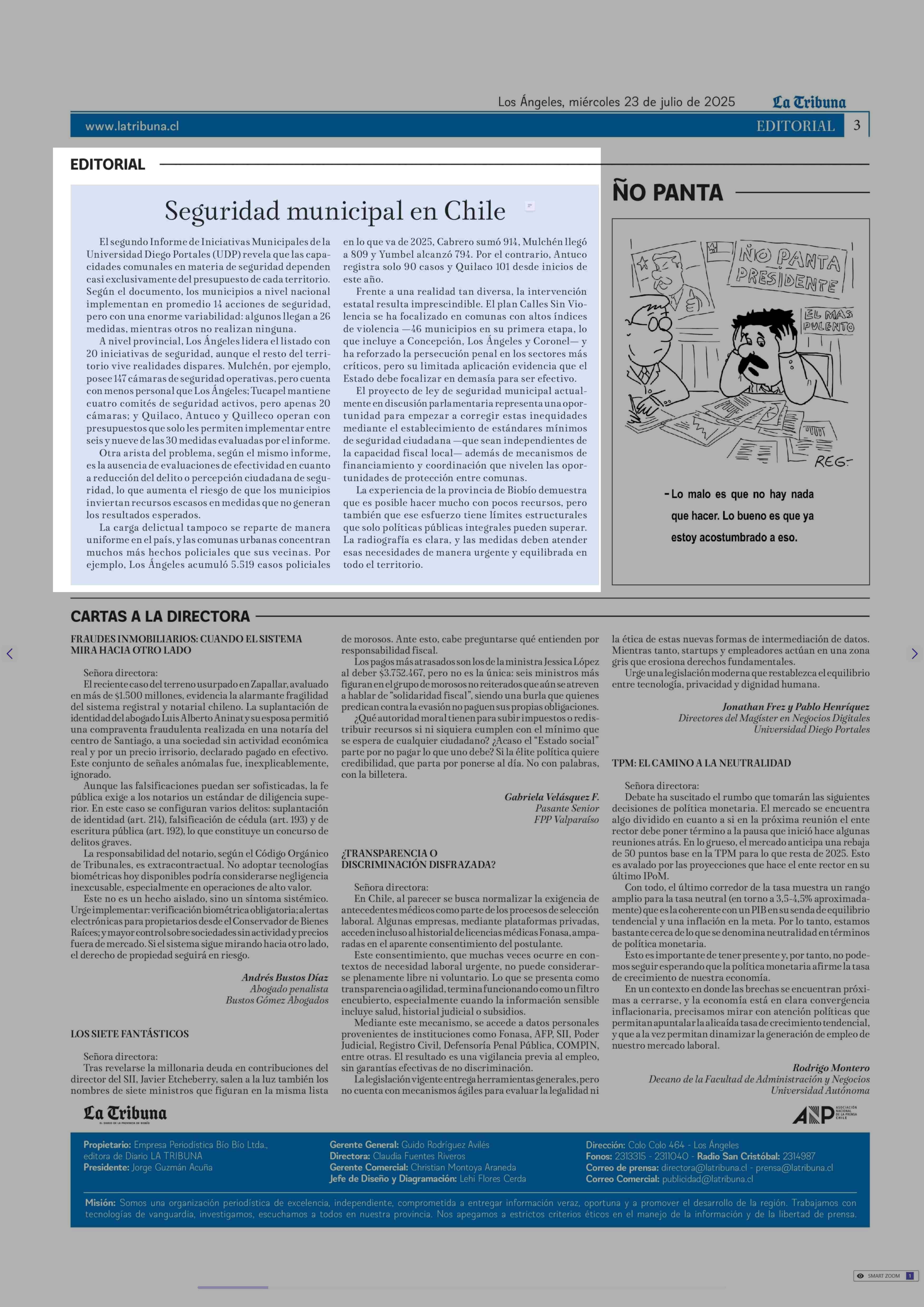 EDITORIAL: Seguridad municipal en Chile 23-07-2025 La Tribuna |