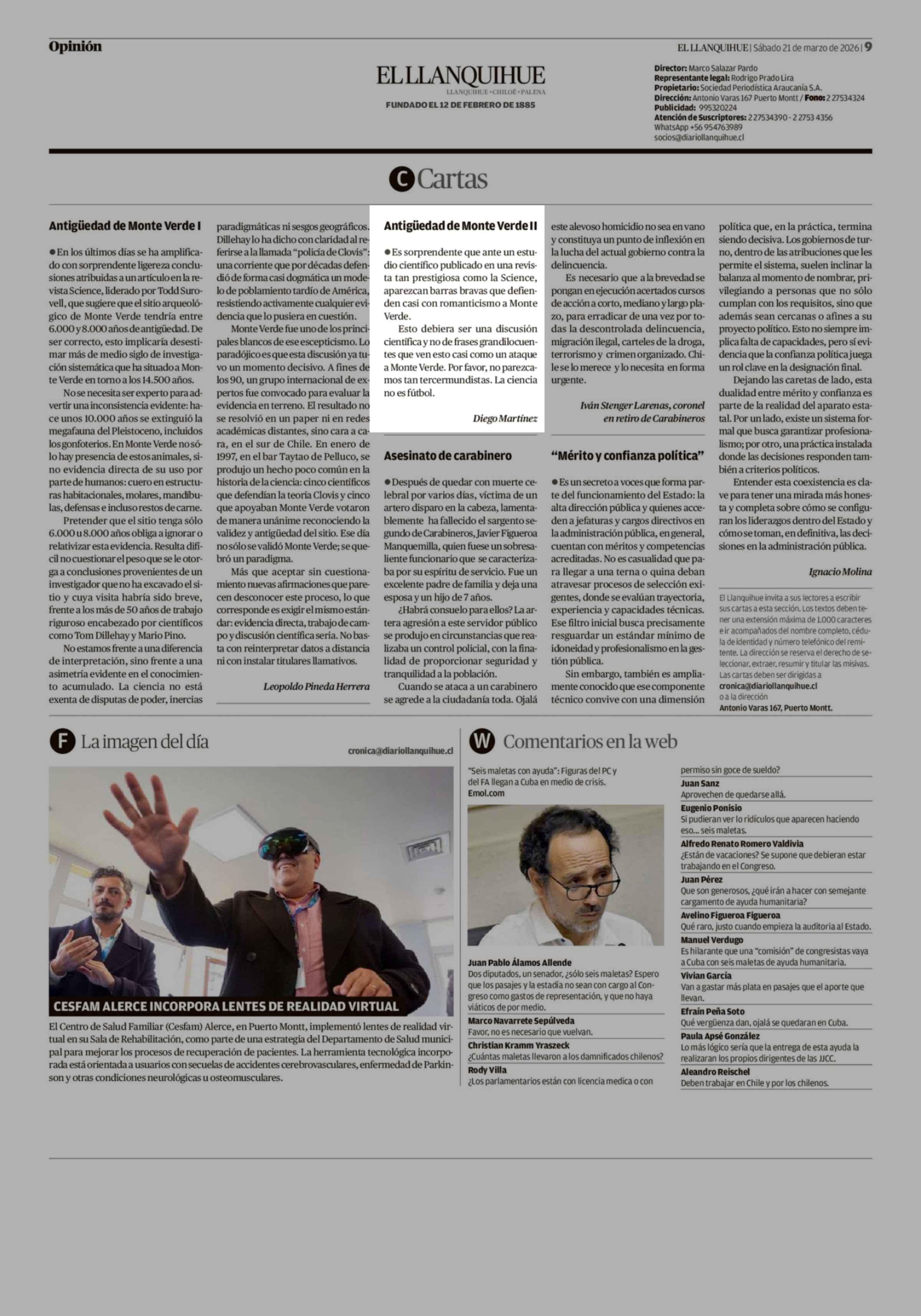 Título: Cartas: Antigüedad de Monte Verde II
