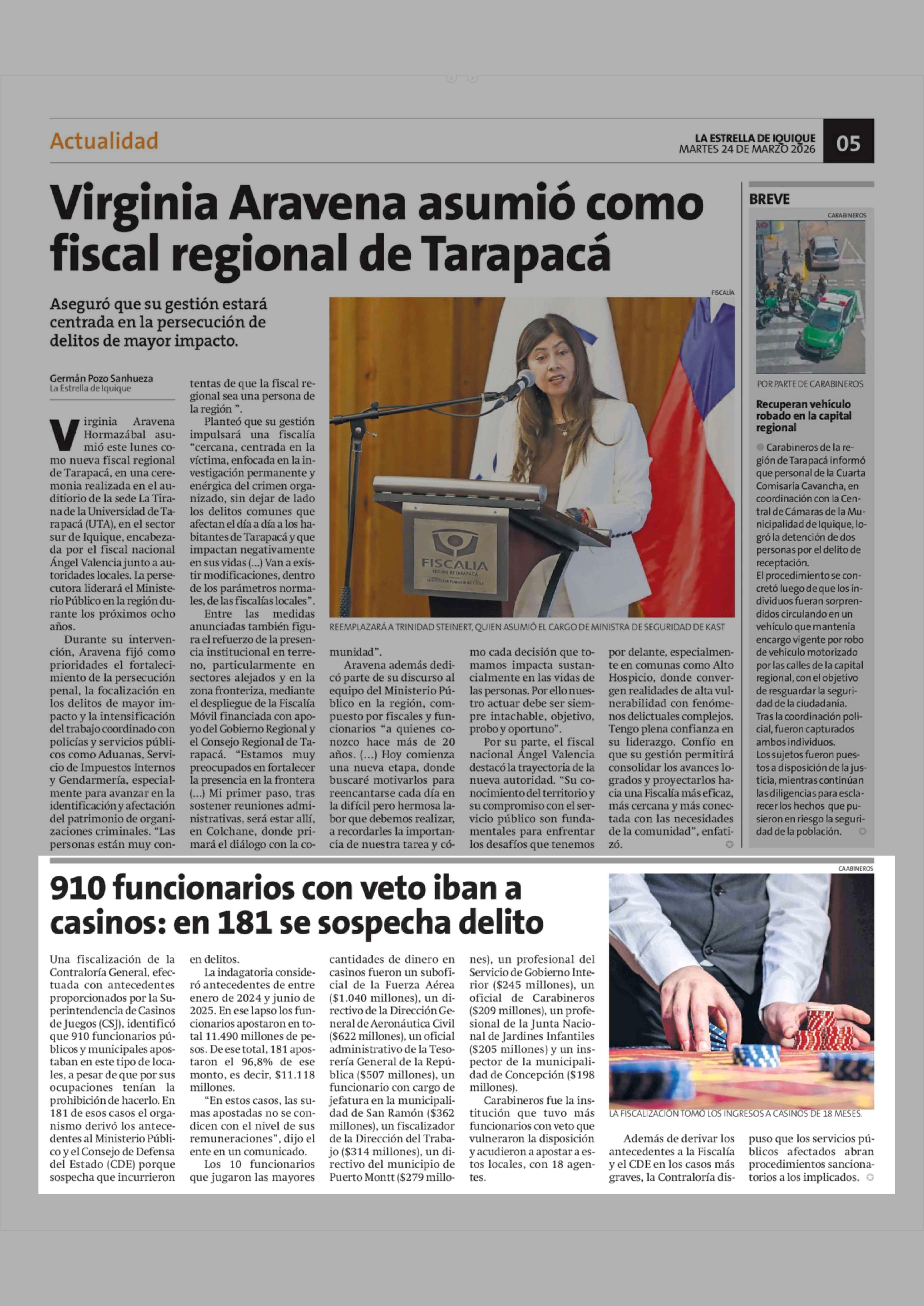 Fecha: 24-03-2026 Sector: Noticia general Región: Región de Tarapacá