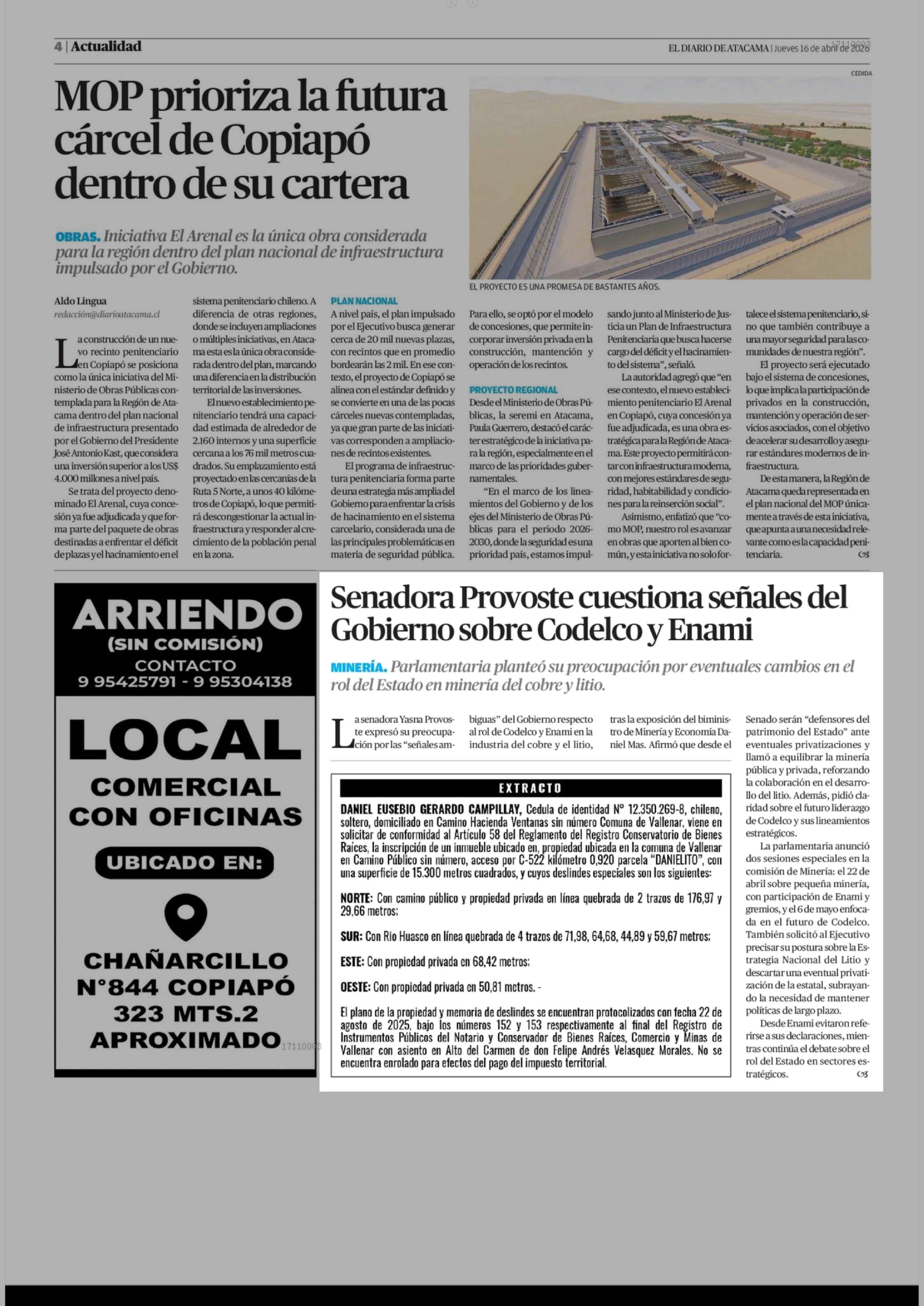 | Fecha: | 16-04-2026 | Sector: | Noticia general | Región: | Región de Atacama |