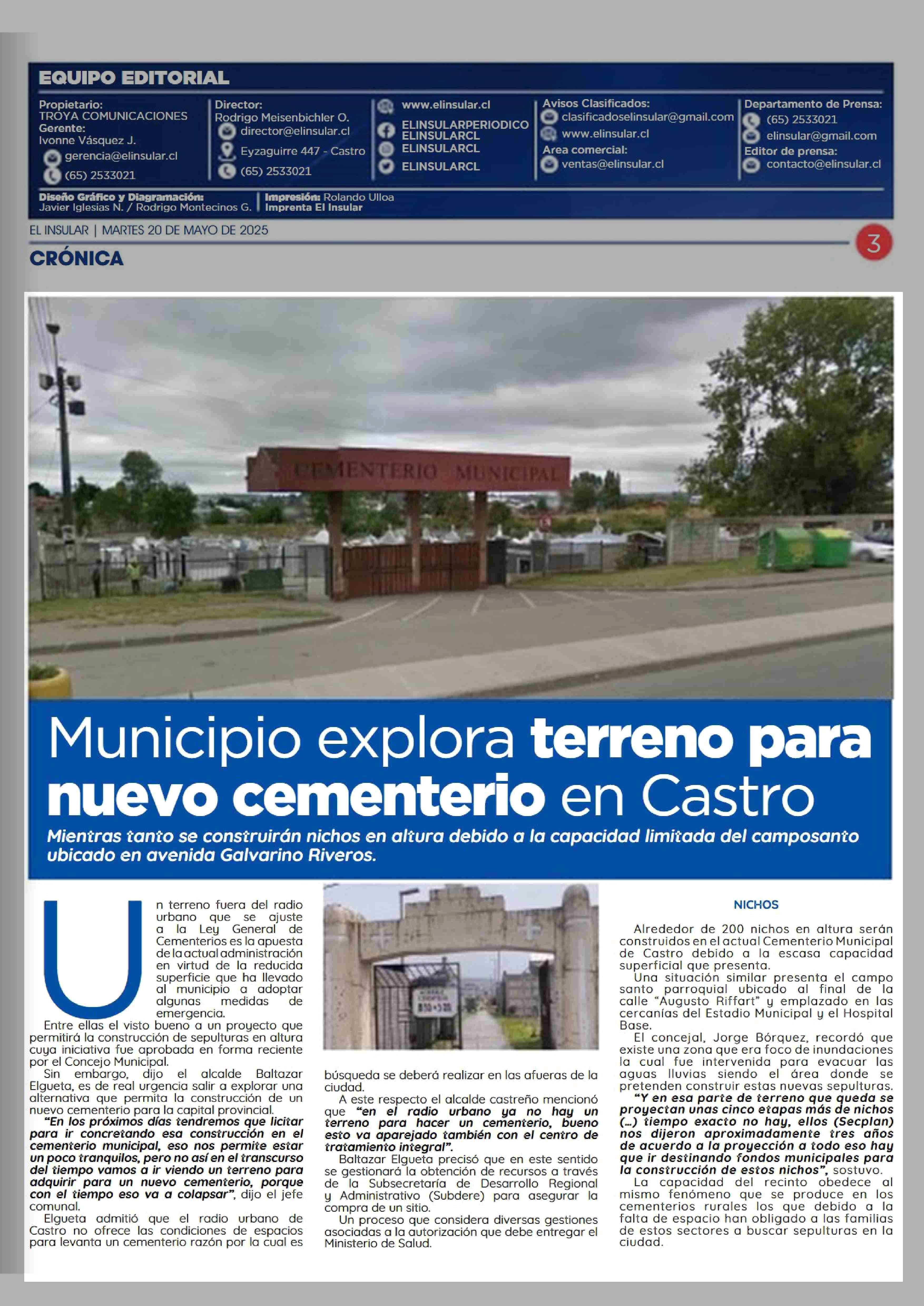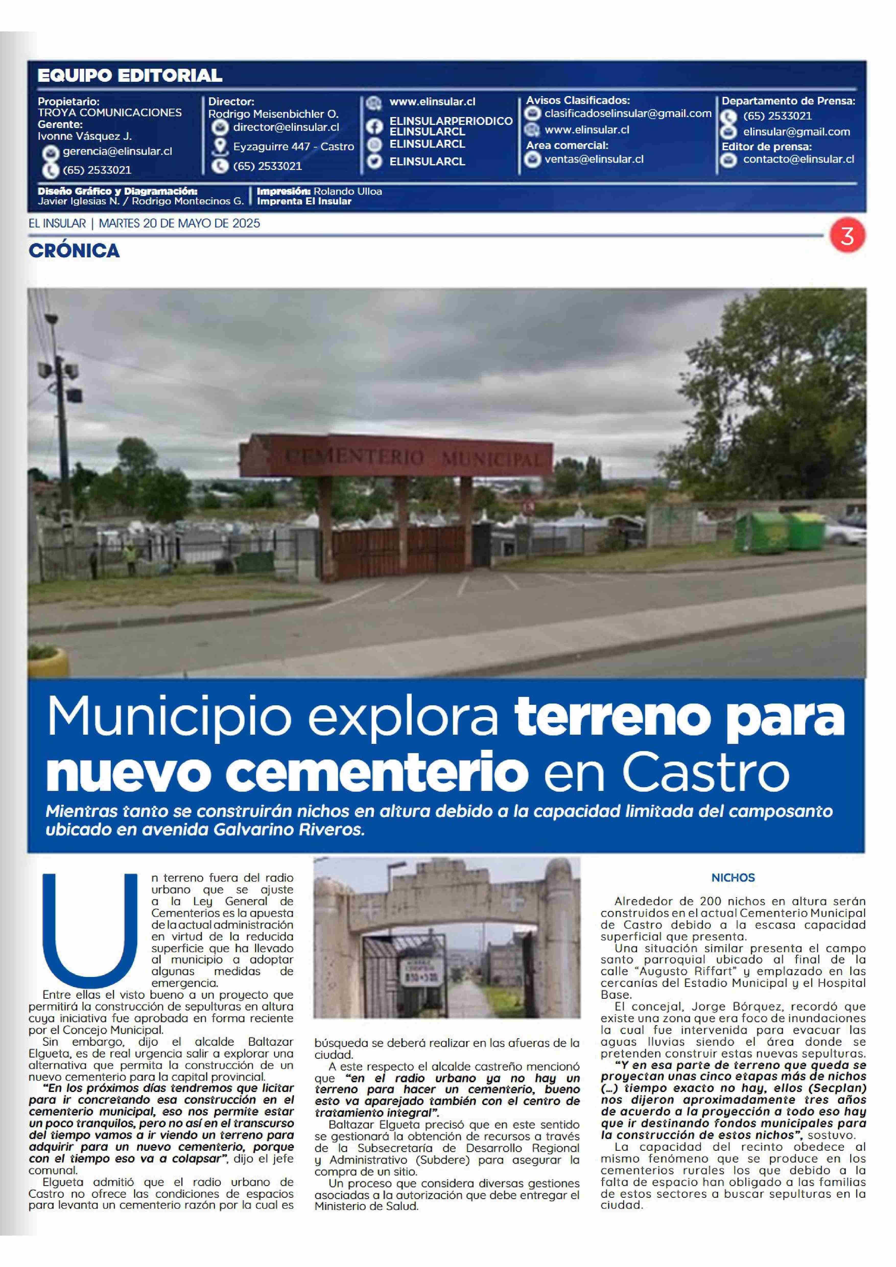 | Título: | Municipio explora terreno para nuevo cementerio en Castro |