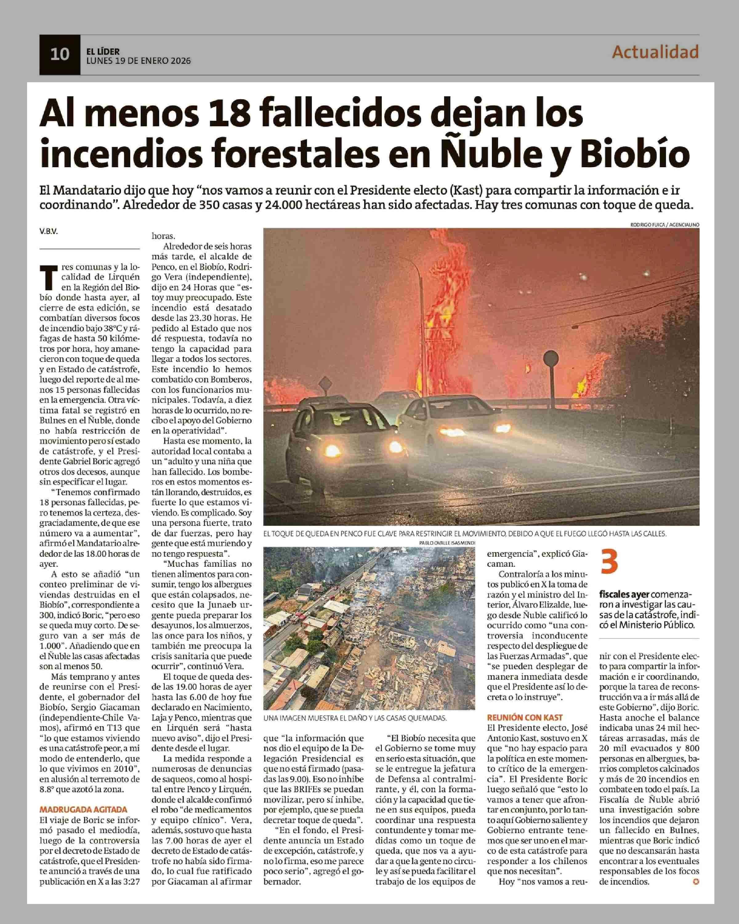 Título: Al menos 18 fallecidos dejan los incendios forestales en Nuble y Biobio