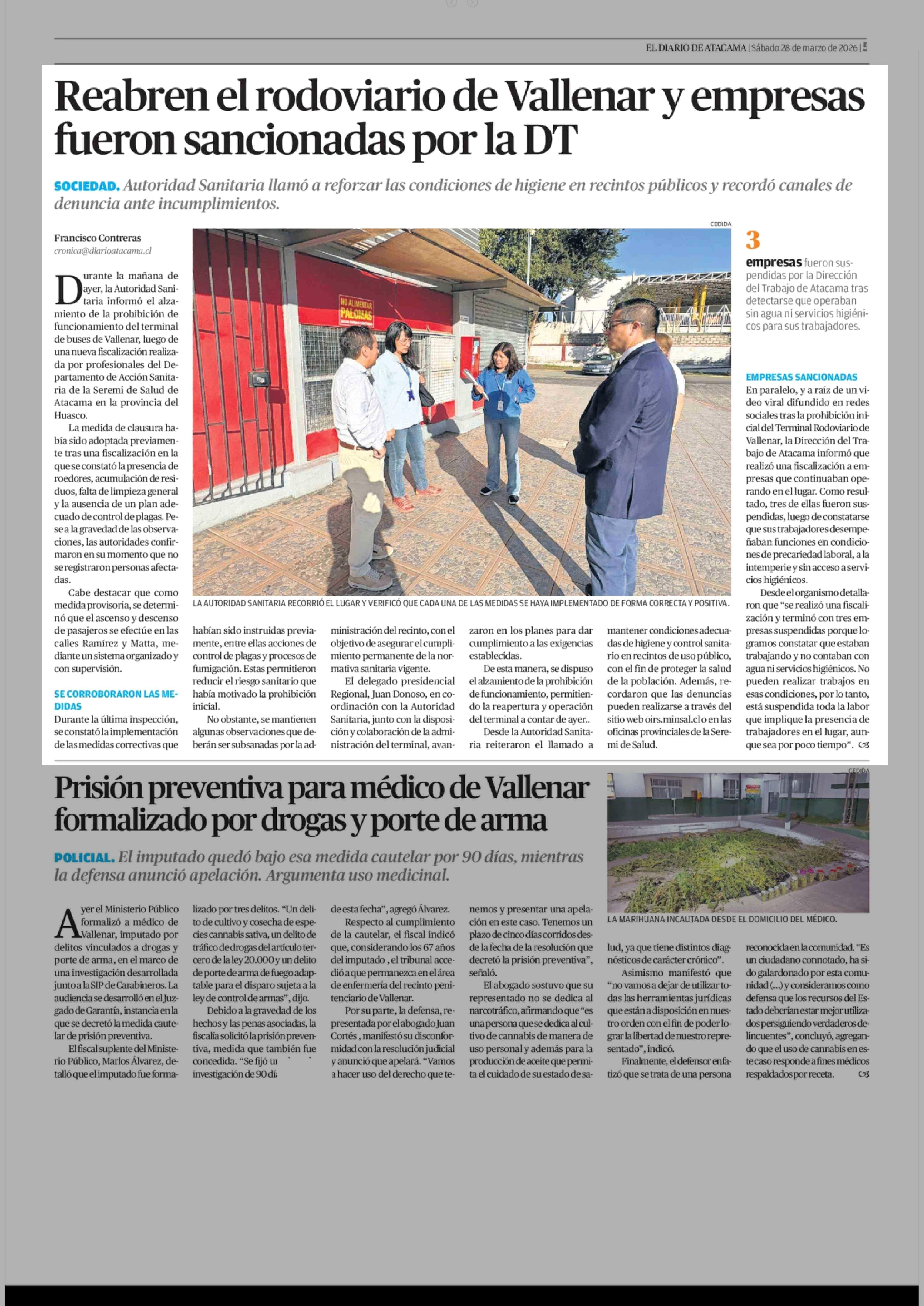 Reabren el rodoviario de Vallenar y empresas fueron sancionadas por la DT 28-03-2026 El Diario de Atacama |