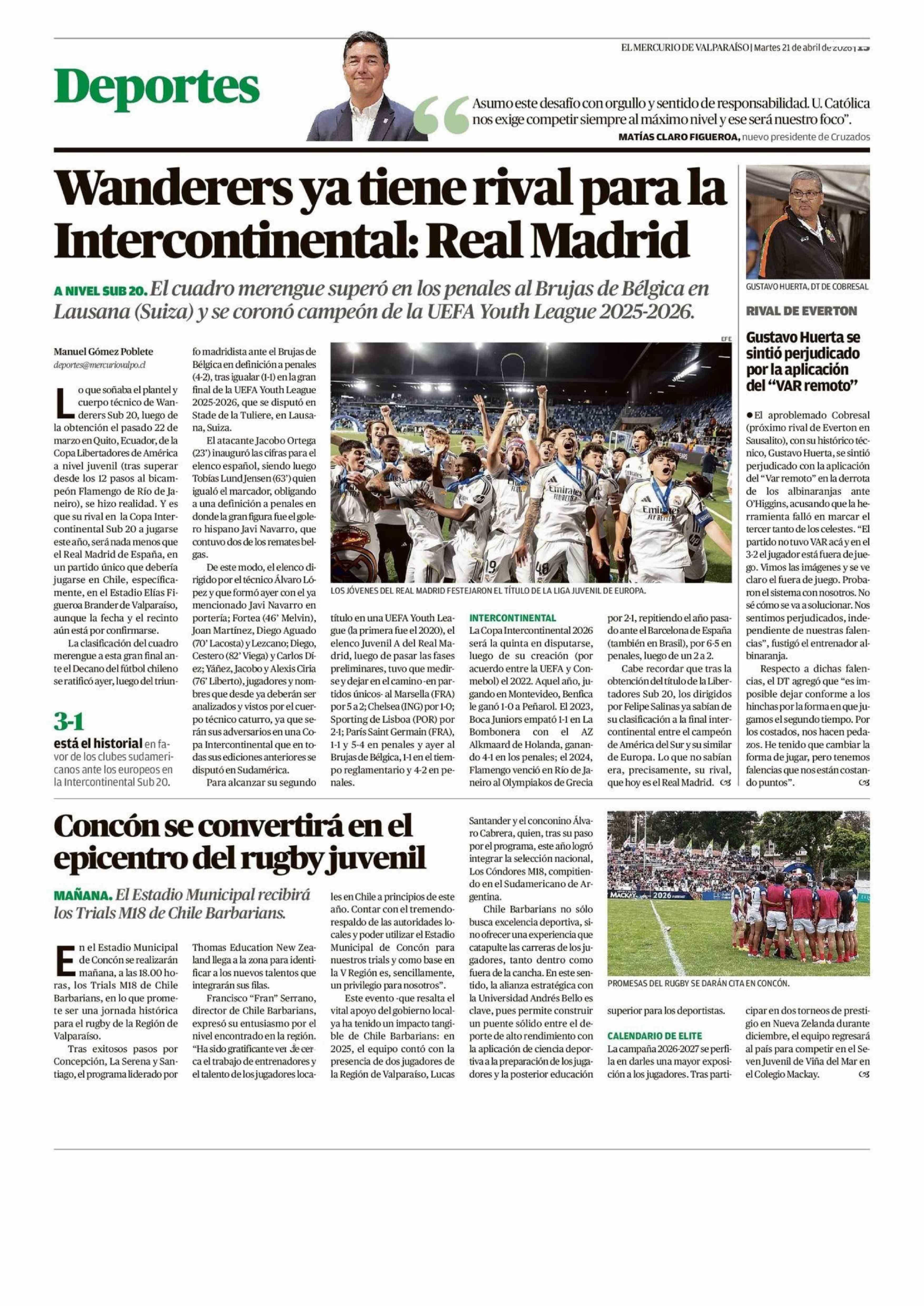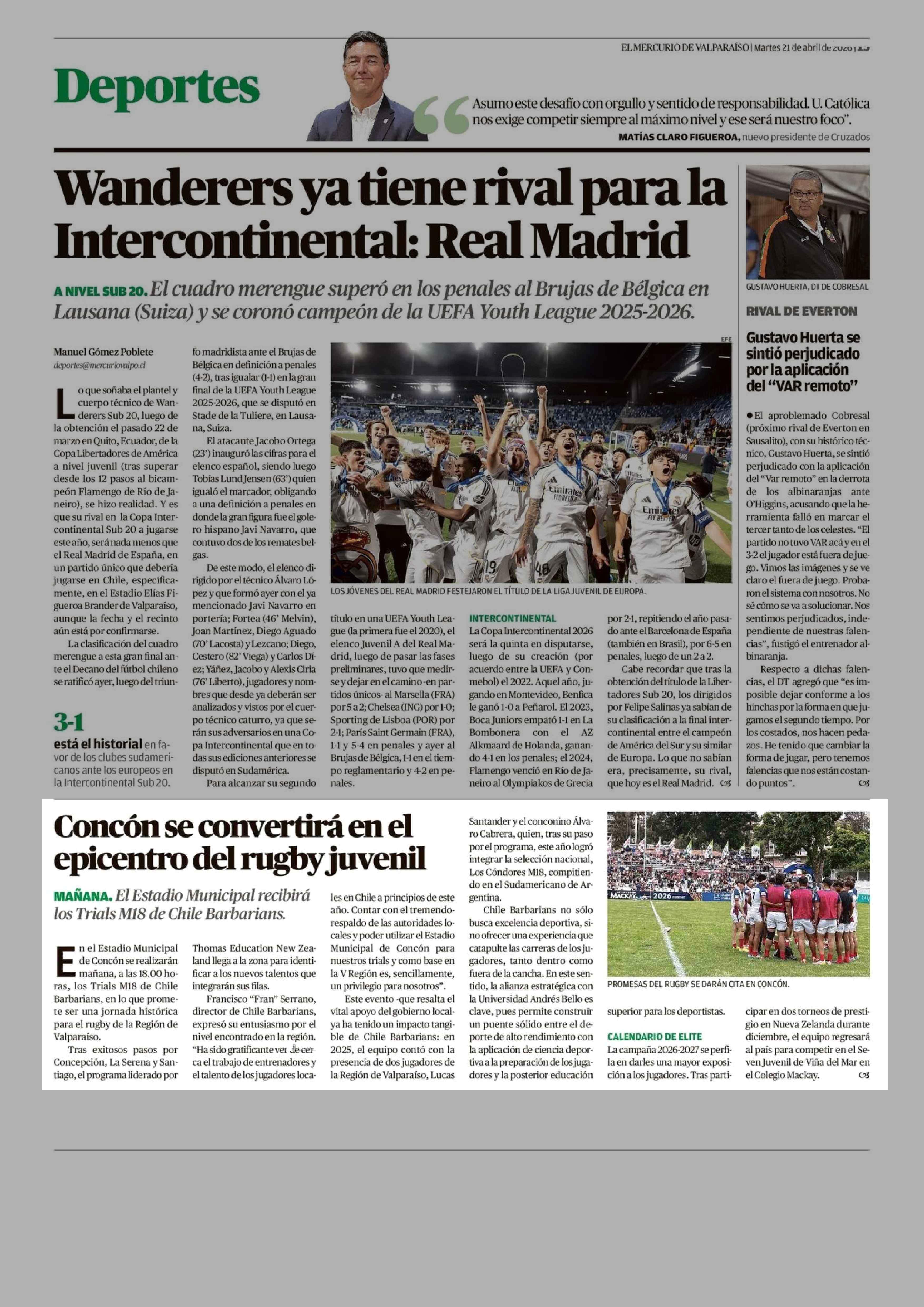Concón se convertirá en el epicentro del rugby juvenil 21-04-2026 El Mercurio de Valparaíso |