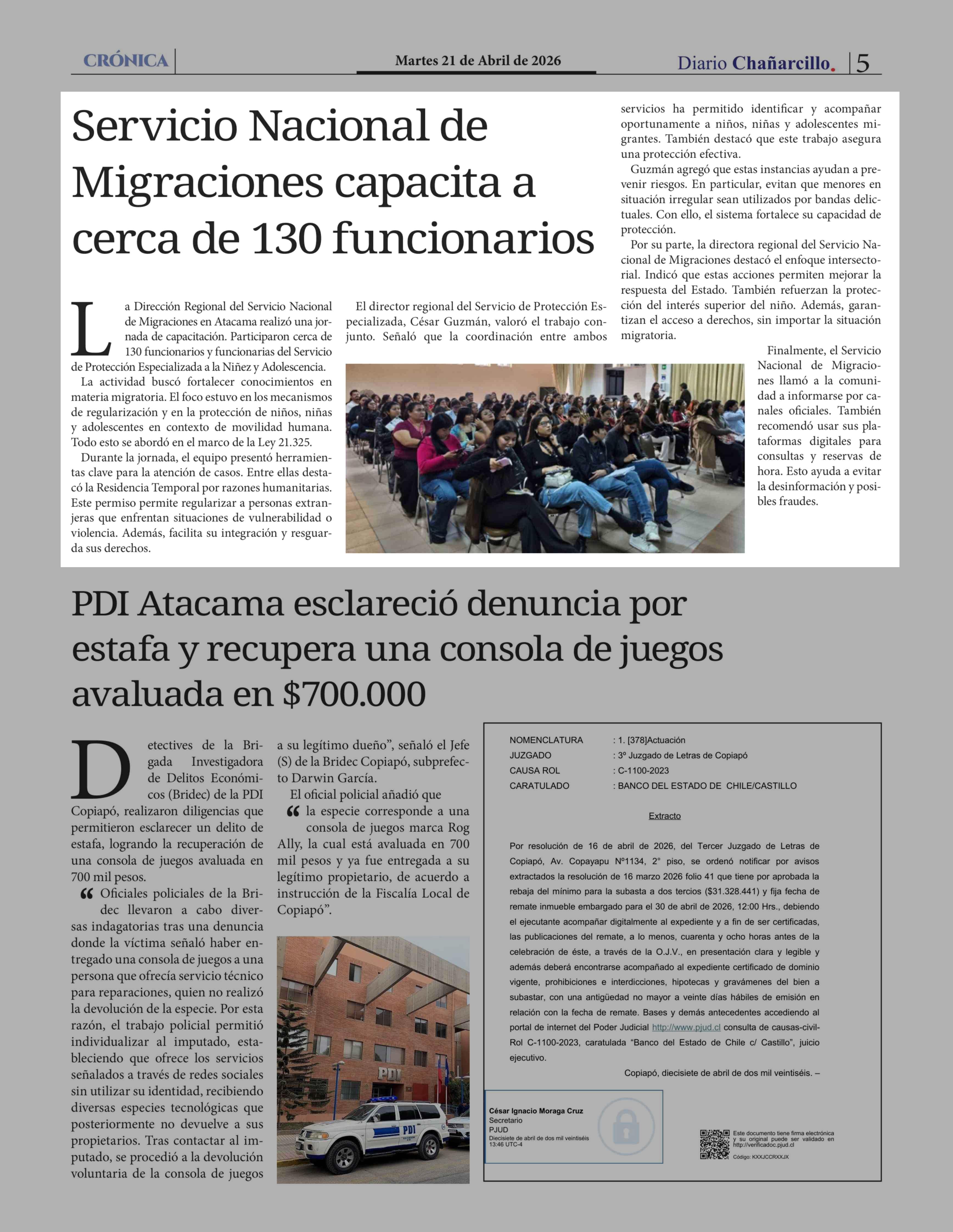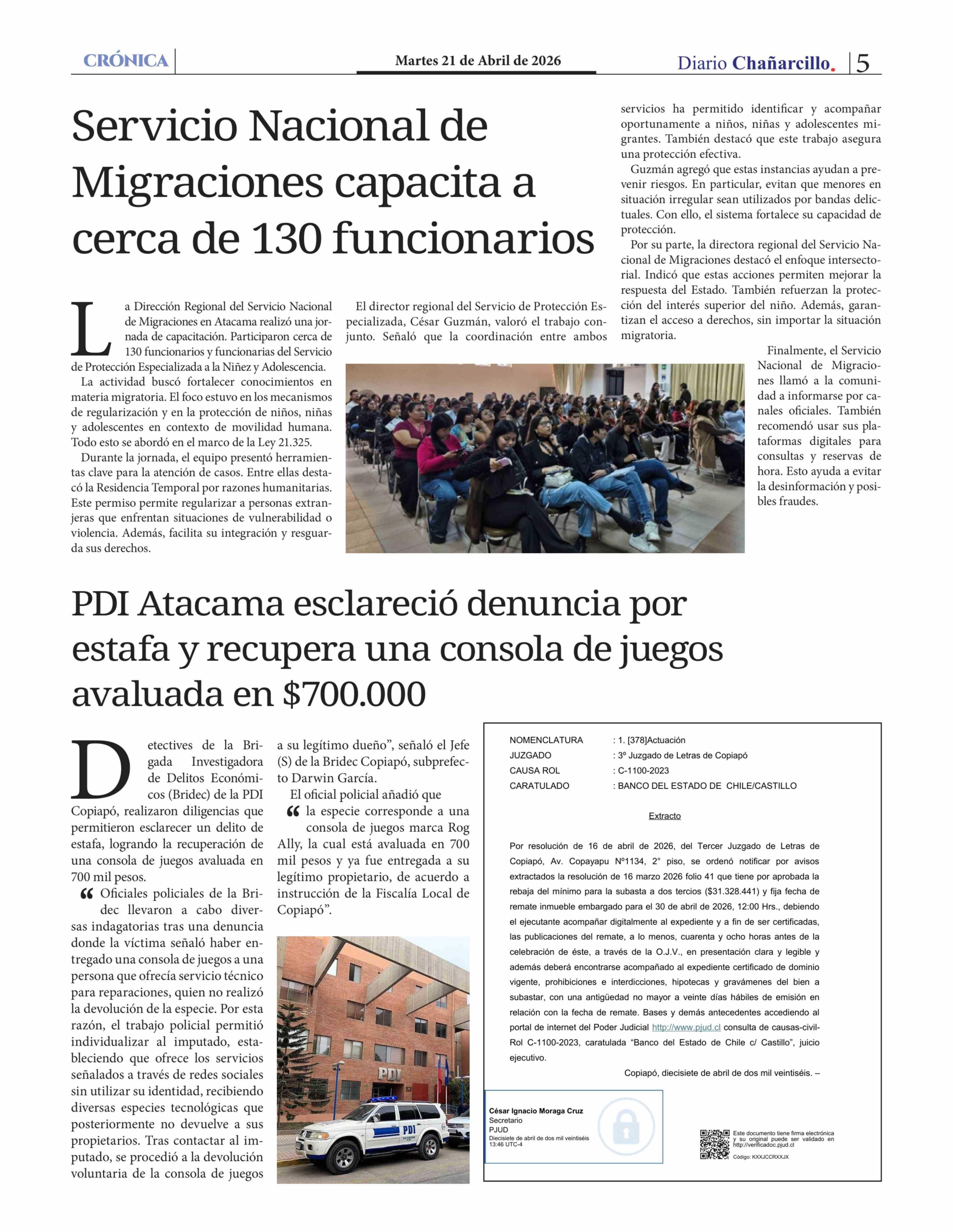 Servicio Nacional de Migraciones capacita a cerca de 130 funcionarios 21-04-2026 Diario Chañarcillo |