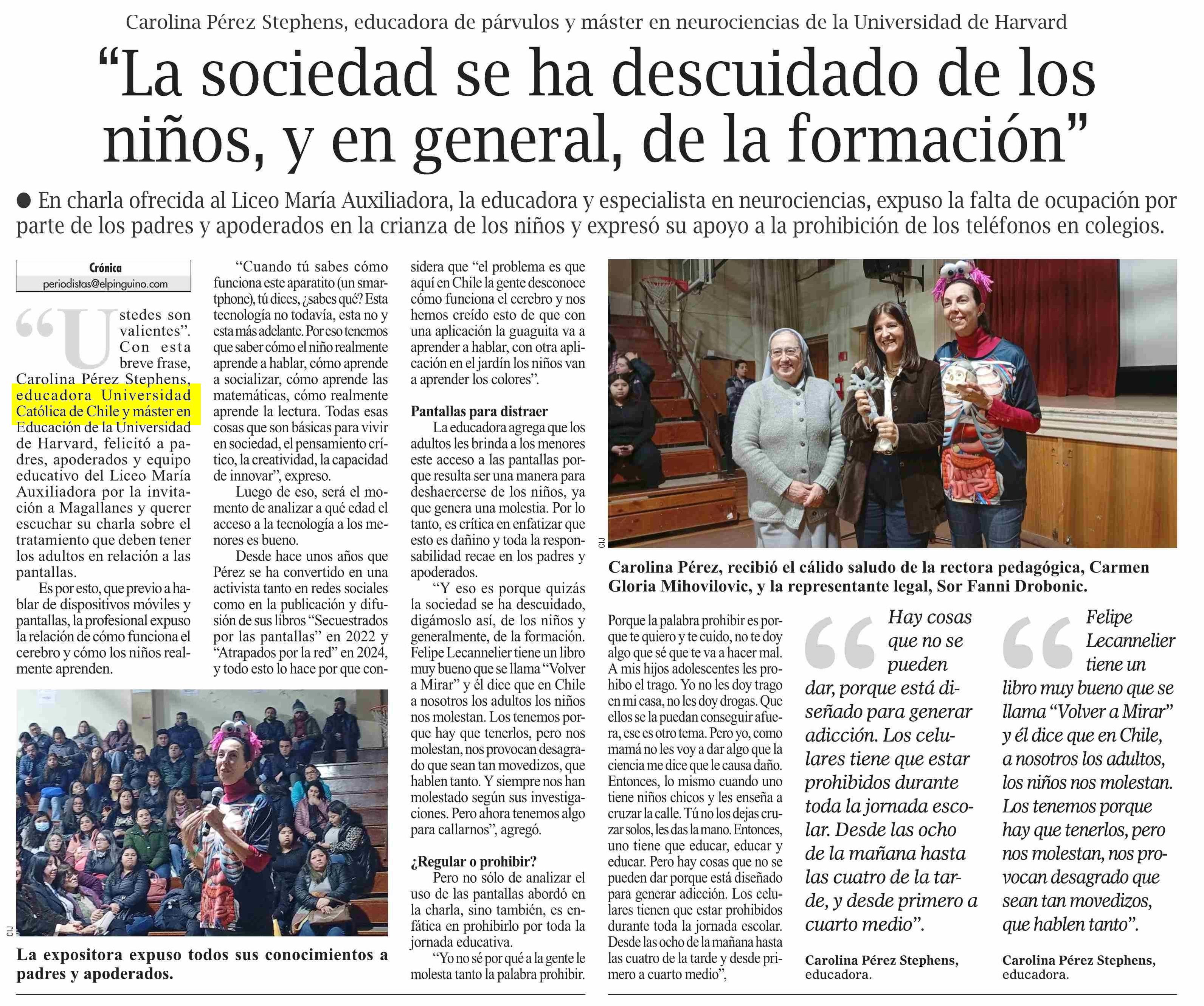 “La sociedad se ha descuidado de los niños, y en general, de la formación” 22-05-2025 El Pingüino |