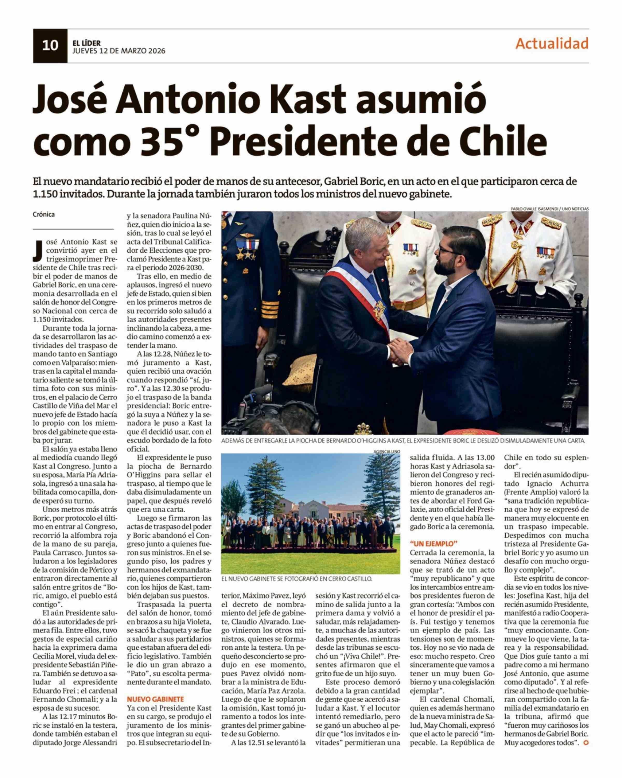 José Antonio Kast asumió como 35° Presidente de Chile 12-03-2026 El Líder |
