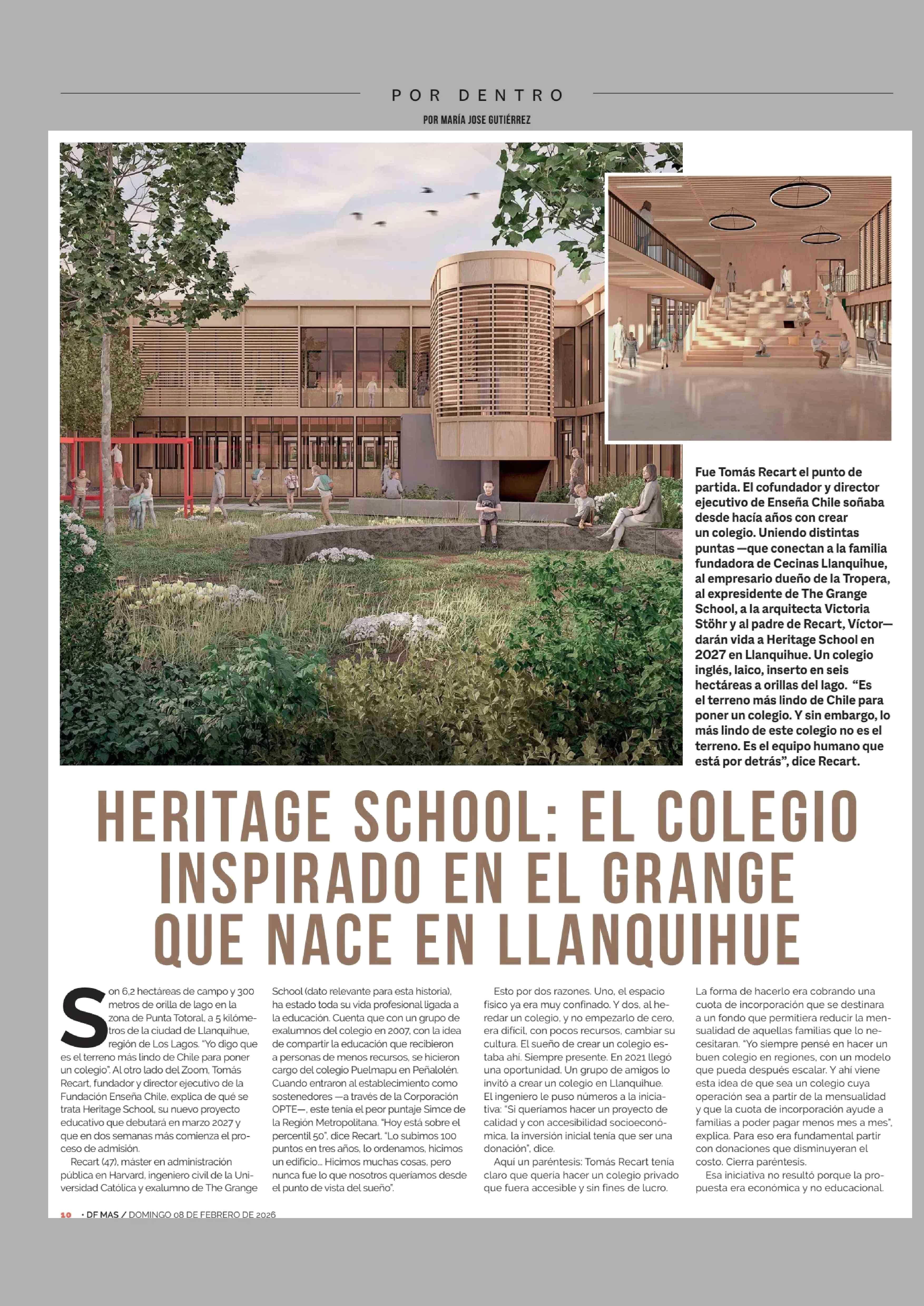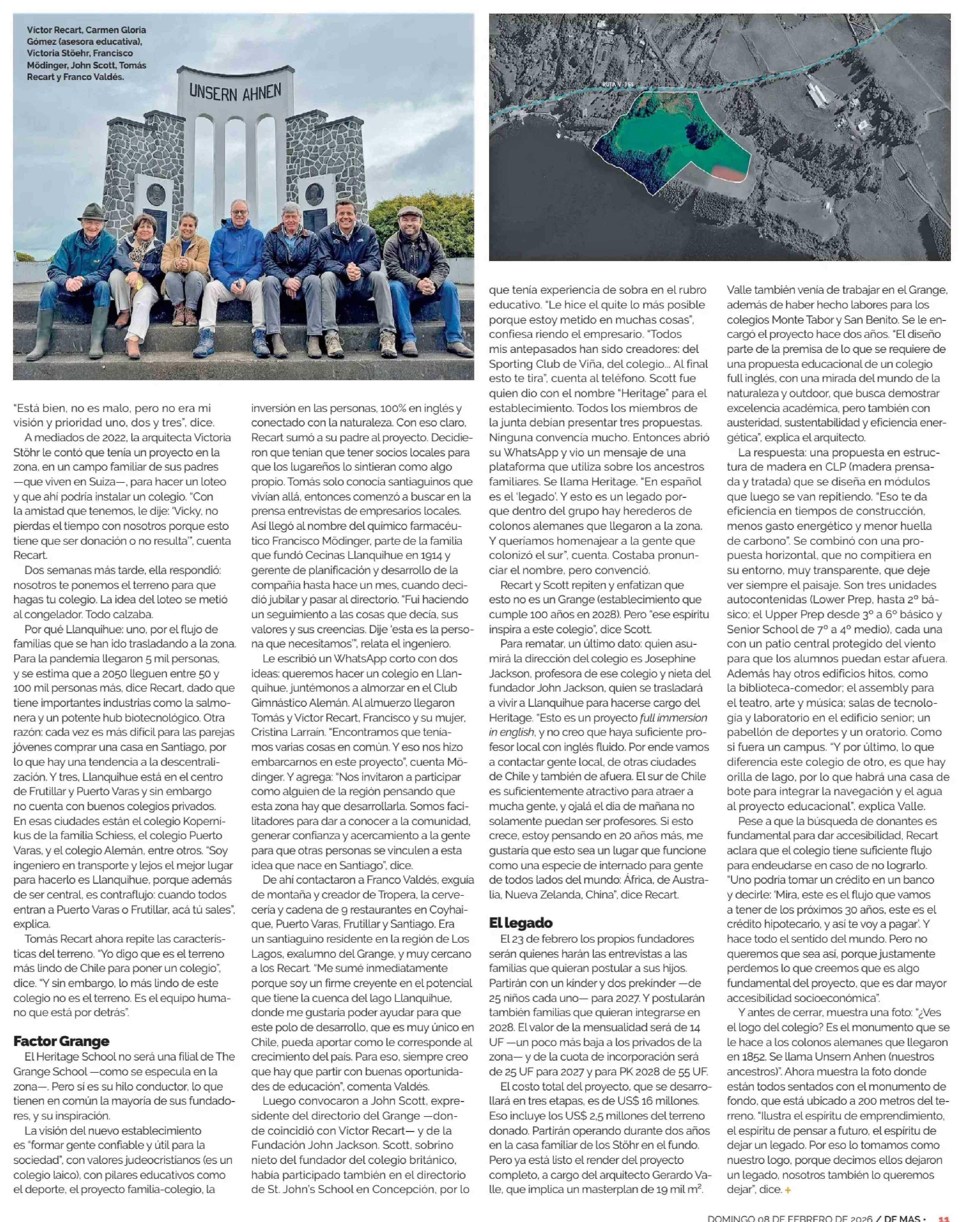 HERITAGE SCHOOL: EL COLEGIO INSPIRADO EN EL GRANGE QUE NACE EN LLANQUIHUE 08-02-2026 Diario Financiero |